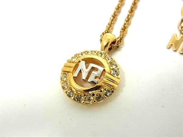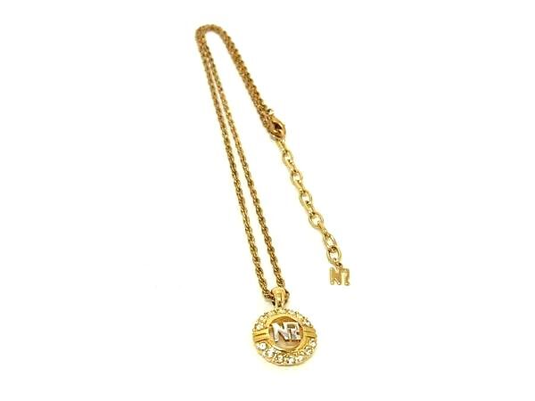 ■美品■ NINA RICCI ニナリッチ ラインストーン ロゴ ネックレス ペンダント アクセサリー レディース ゴールド系 DK6242