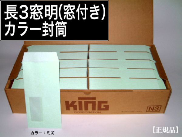 長3封筒《窓付 紙厚70g/m2 カラー封筒 選べる6色 長形3号》1000枚 窓あき 窓明 窓つき セロ窓 長型3号 A4 三ツ折 キングコーポレーション