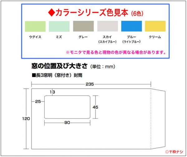 ◇サイズ:120mm×235mm(窓寸法:45mm×90mm)