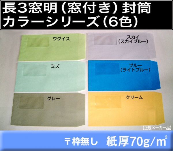 ☆長3封筒 窓付 70g/m2《カラー6色から選択可》1,000枚★