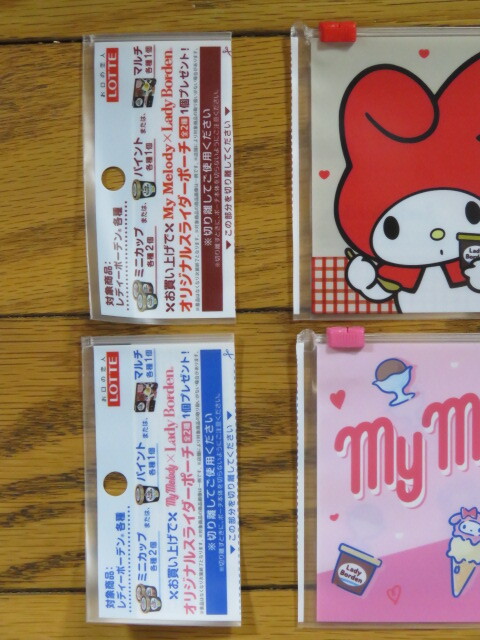 即決140円 LOTTE ロッテ マイメロディ オリジナル スライダーポーチ 全2種×3 計6枚セット 新品・未使用 送料110円