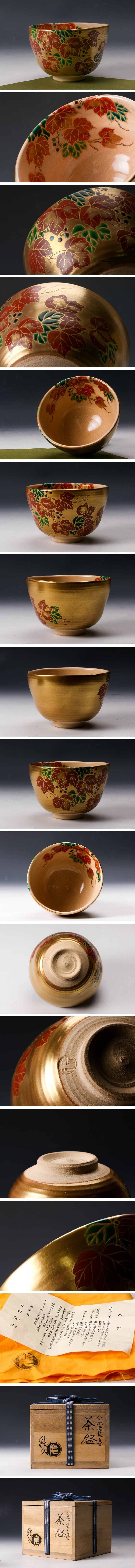 【佳香】中村能久 金地赤蔦之図茶碗 共箱 共布 栞 茶道具 本物保証