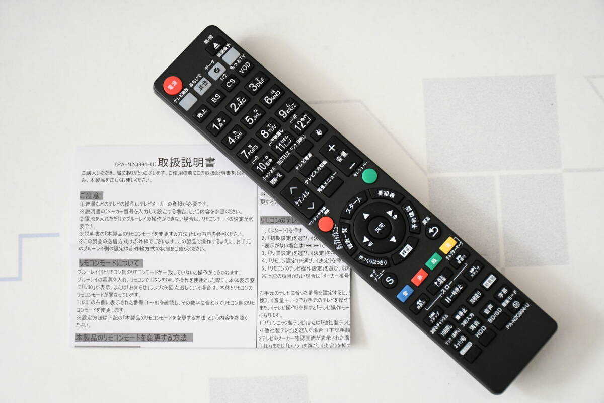 リモコンはディーガ対応の汎用リモコンになりますが、