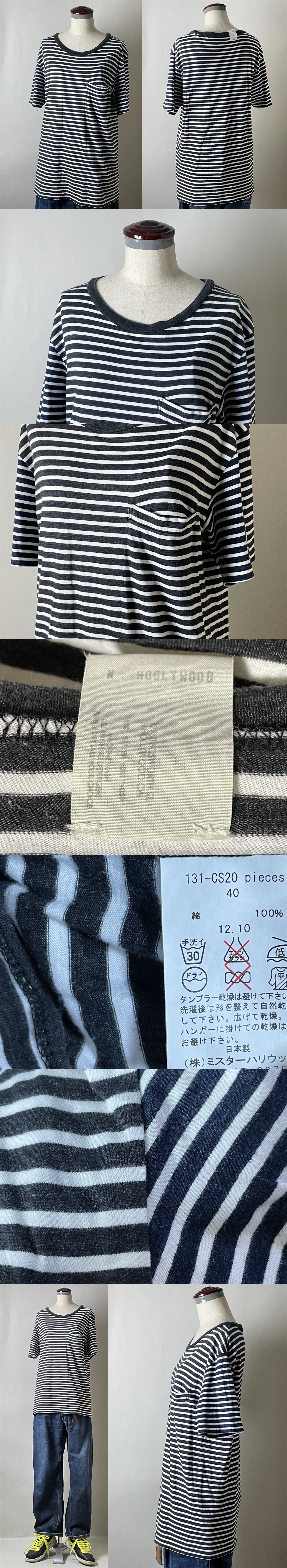 ★並品★【国内正規品 日本製】n.hoolywood ミスターハリウッド 131-CS20 pieces コットン100% 切替え ボーダー 半袖 Tシャツ 40 白×黒×紺