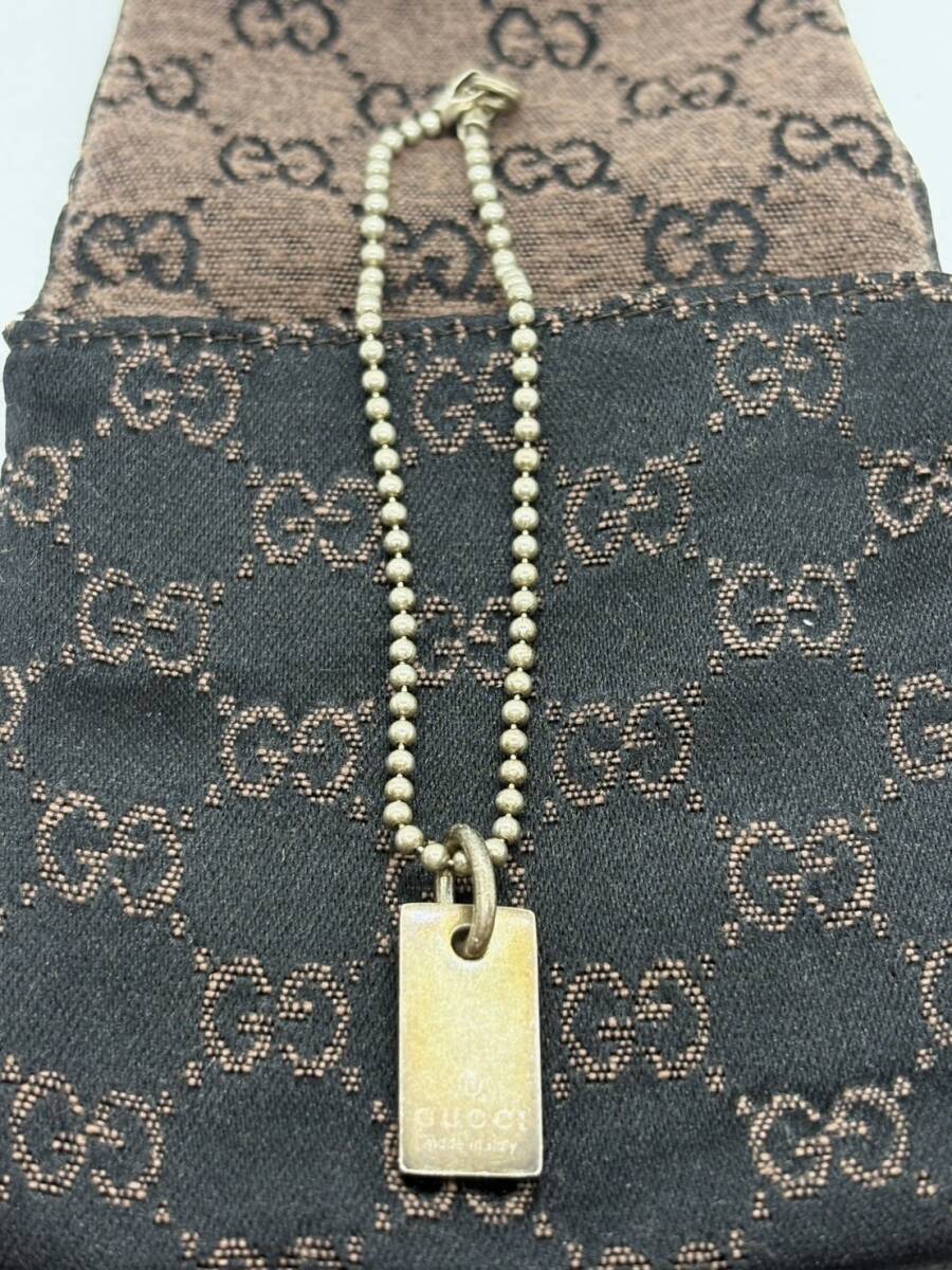 【現状品】GUCCI グッチ ロゴプレート ボールチェーン ブレスレット シルバー925 ヴィンテージ品 1697AR 925刻印
