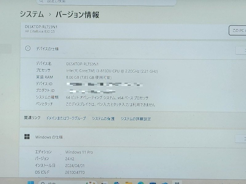 | [現状品] HP EliteBook 830 G5 i3-8130U 2.20GHz 8GB SSD256GB 13.3inch FHD Webカメラ 指紋センサー SIMスロット Windows11 Pro (3) | |