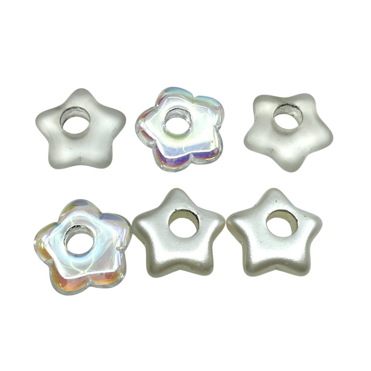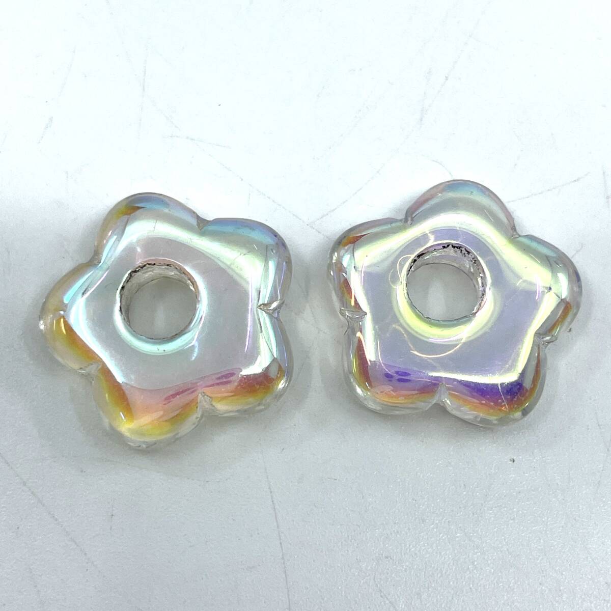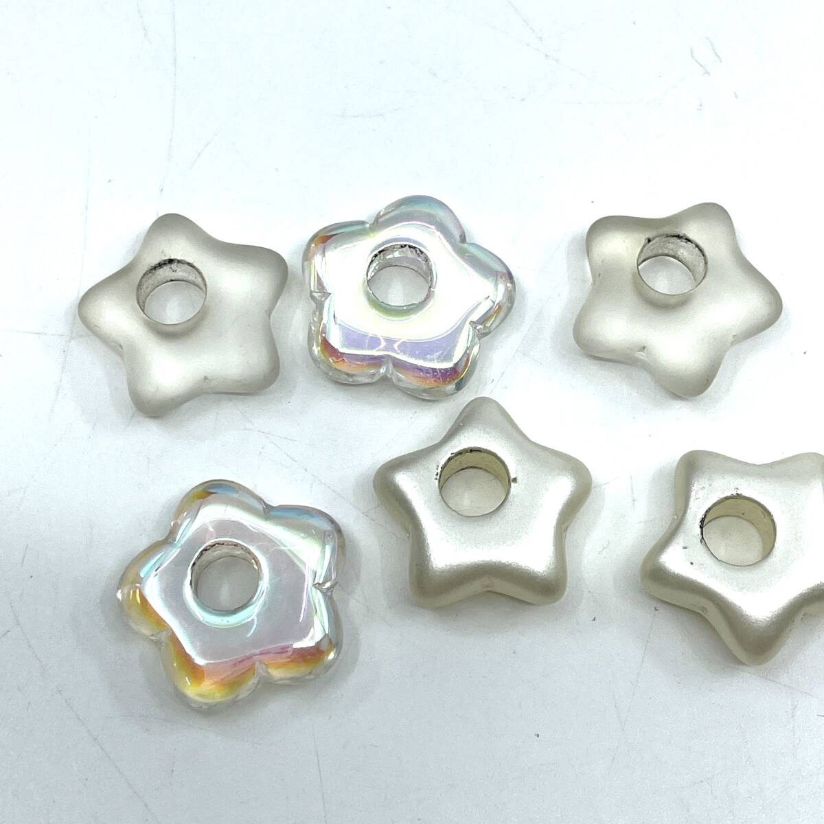 ハンドメイド用 パーツ モチーフビーズ × 6個 フラワー 花 クリア レインボー オーロラ / スター 星 クリア マット / パール風