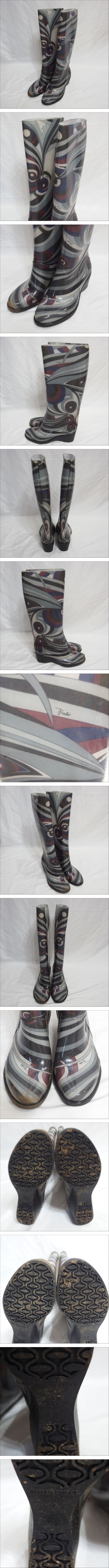 EMILIO PUCCI◆エミリオ・プッチ グレー系 プリント 長靴 ロング レインブーツ サイズ37◆USED 現状渡し品 | |||||||||