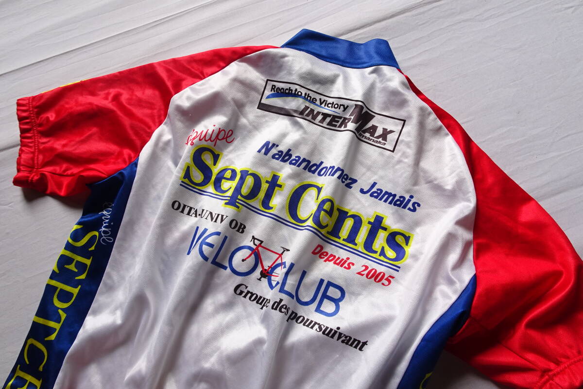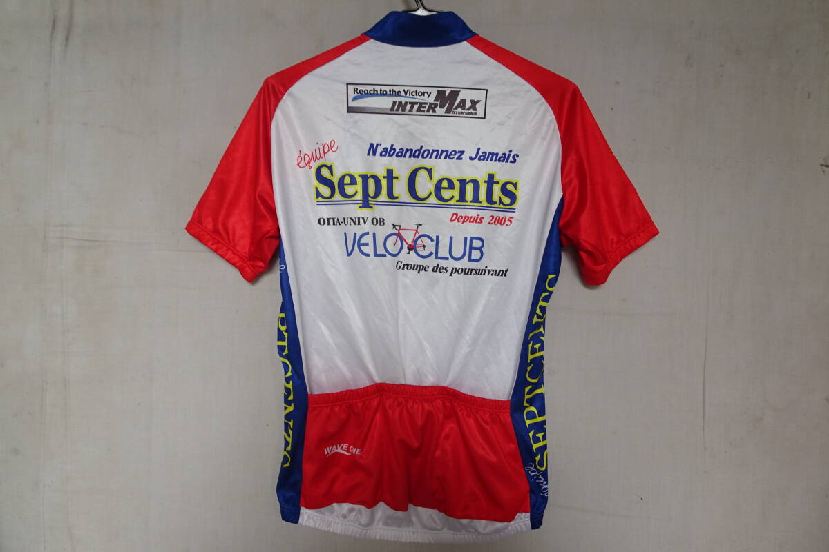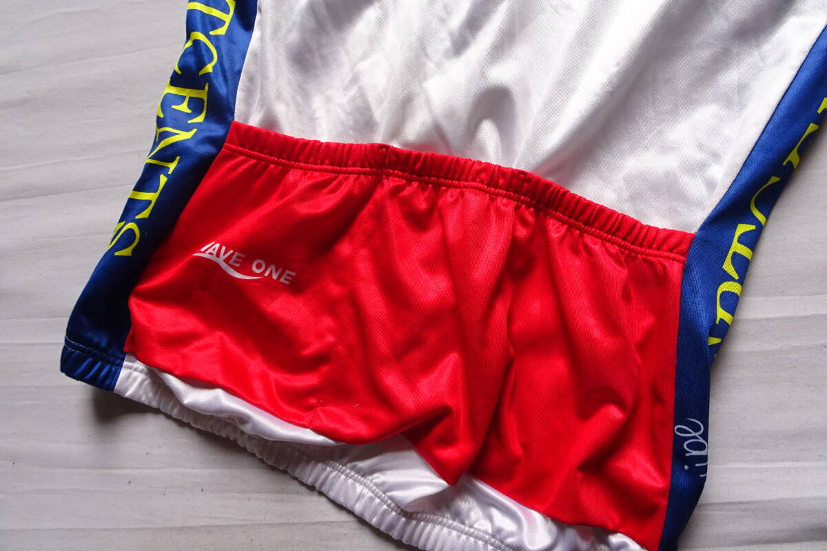 WAVE ONE/サイクリングトップス/半袖/前ジップアップ/赤・青切替配色/後裾ポケット/自転車/ロードバイク/白/ホワイト/Lサイズ(8/5R7)