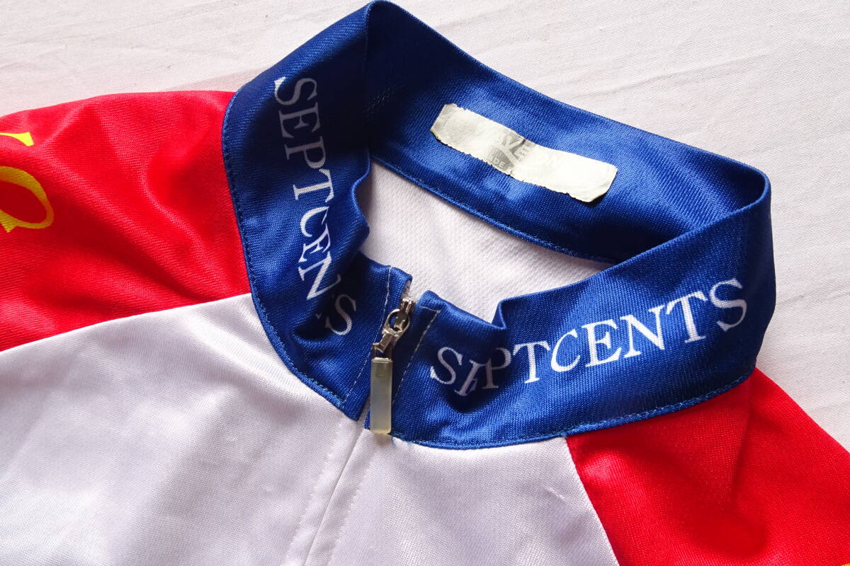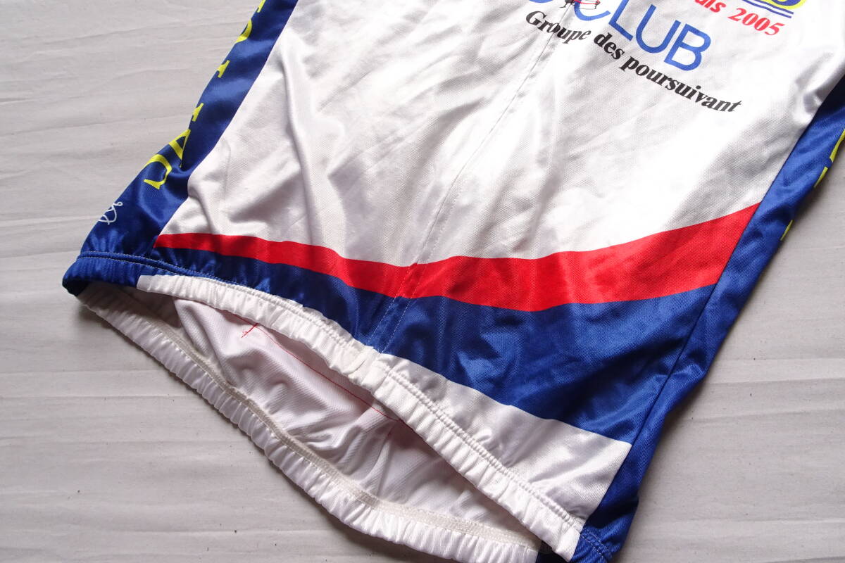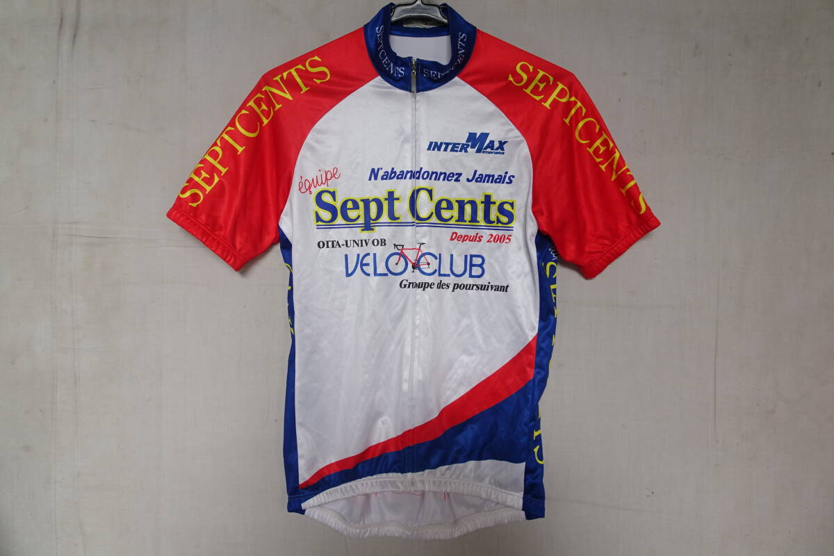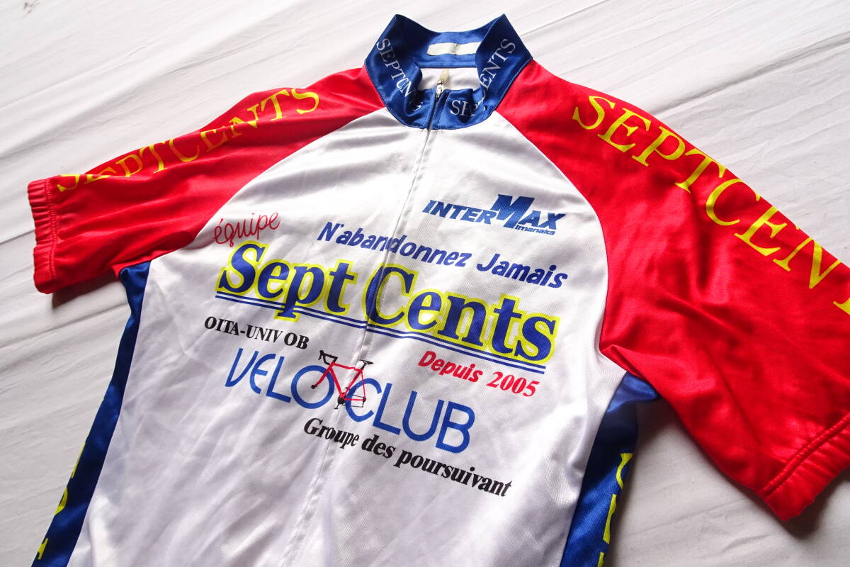 WAVE ONE/サイクリングトップス/半袖/前ジップアップ/赤・青切替配色/後裾ポケット/自転車/ロードバイク/白/ホワイト/Lサイズ(8/5R7)