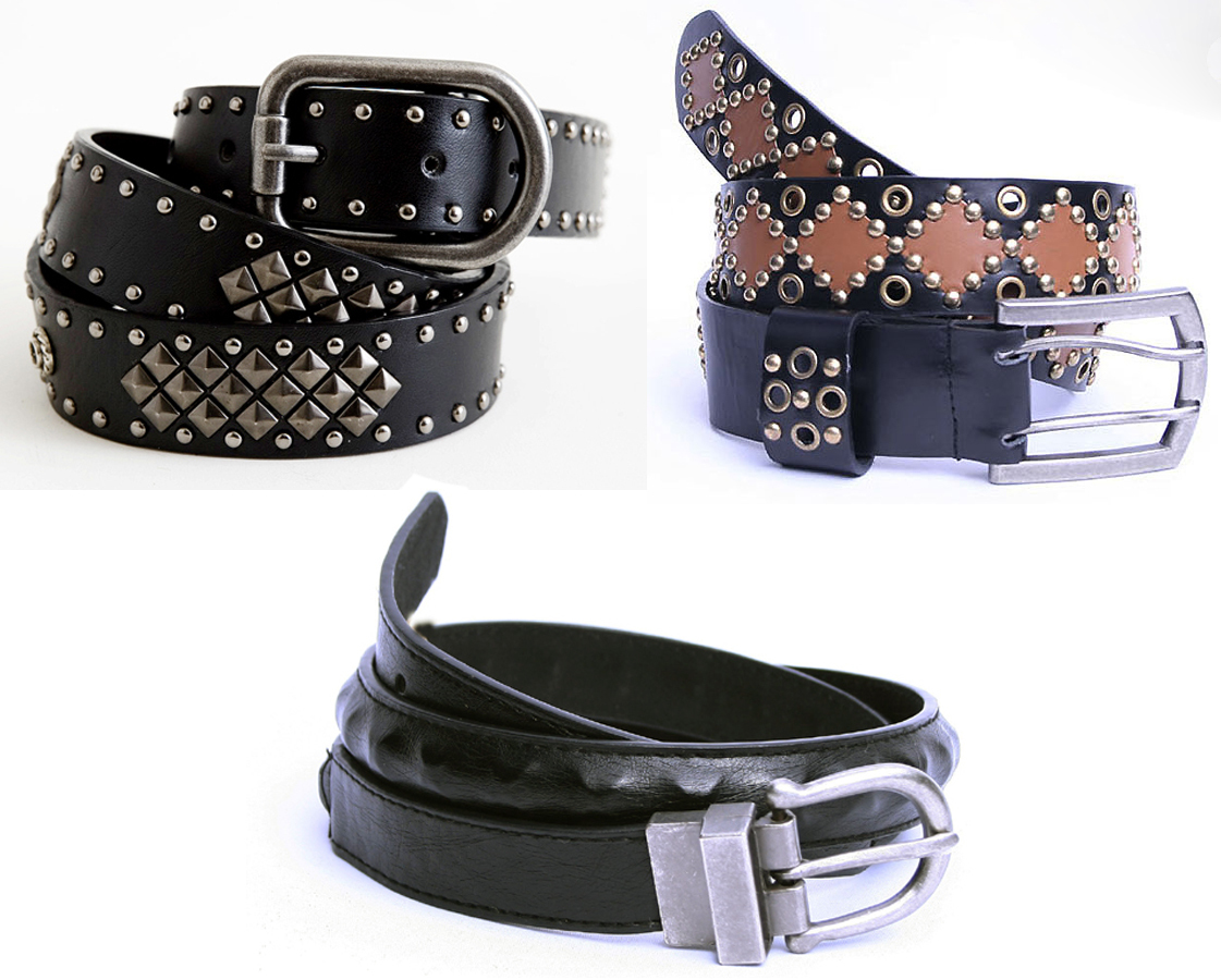 まとめ売り 3点セット ベルト スタッズベルト 鋲ベルト シンプル パンク ロック メンズ スタッズ 鋲 ウルフズヘッドタイプ HTCタイプ BLT02