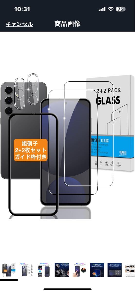 c524 Galaxy S24 ガラスフィルム + カメラフィルム 指紋認証 日本旭硝子強化ガラス 硬度9H 3D Touch対応【2+2枚セット ガイド枠付き】