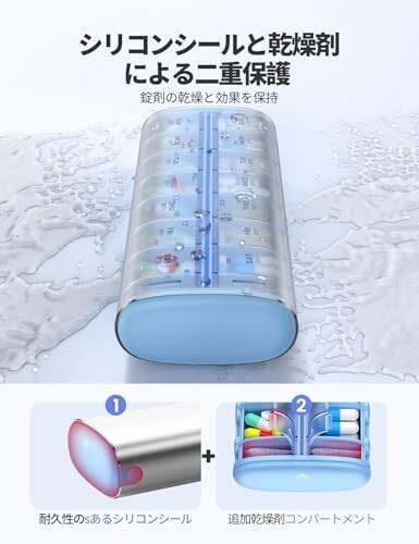 1週間分をAM/PMで管理できる、金属製の携帯用ピルケースです。旅行や外出時のサプリ・医薬品の持ち運びに便利です。