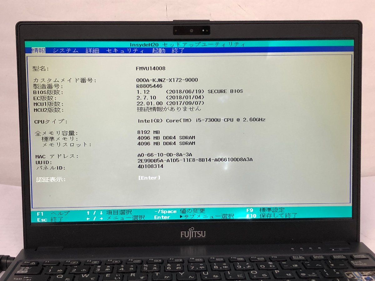 ジャンク/ FUJITSU U938/S Corei5-7世代 メモリ8GB ストレージ無し 【K19603】
