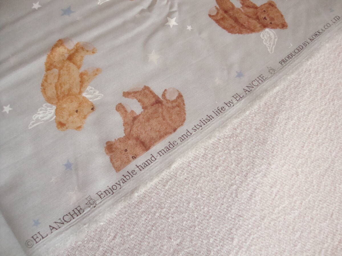 KOKKA EL ANCHE エルアンシュ 綿ローン W114×100cm グレー 天使 くま テディベア 星 コットン プリント 生地 はぎれ 日本製 1m 最長4m