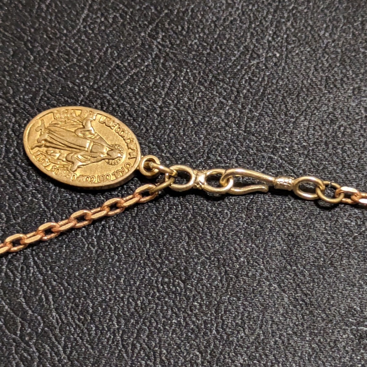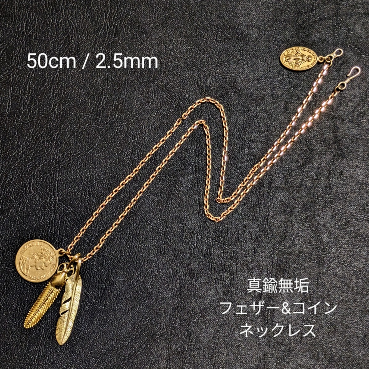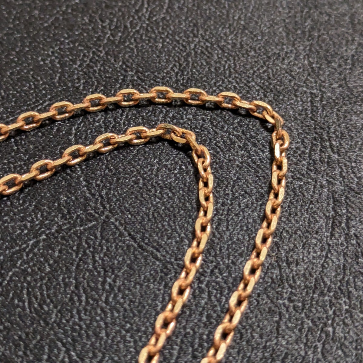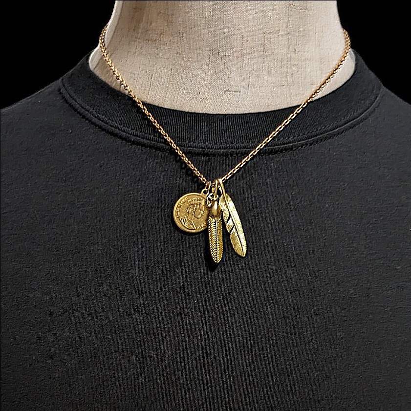 通常、真鍮製のネックレスは変色しないようゴールドカラーでコーティングしてあり経年変化が起きにくいですが、こちらはコーティング無しの真鍮無垢で珍しい材質です。