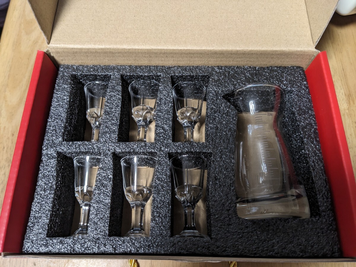 白酒用のピッチャーとグラスセットになります。ピッチャーには目盛りが付いています。