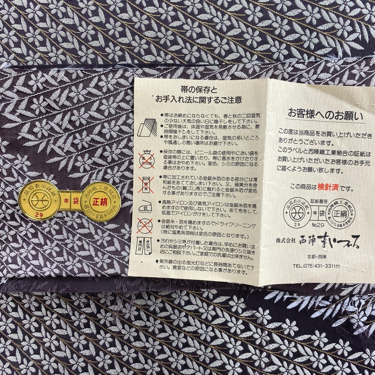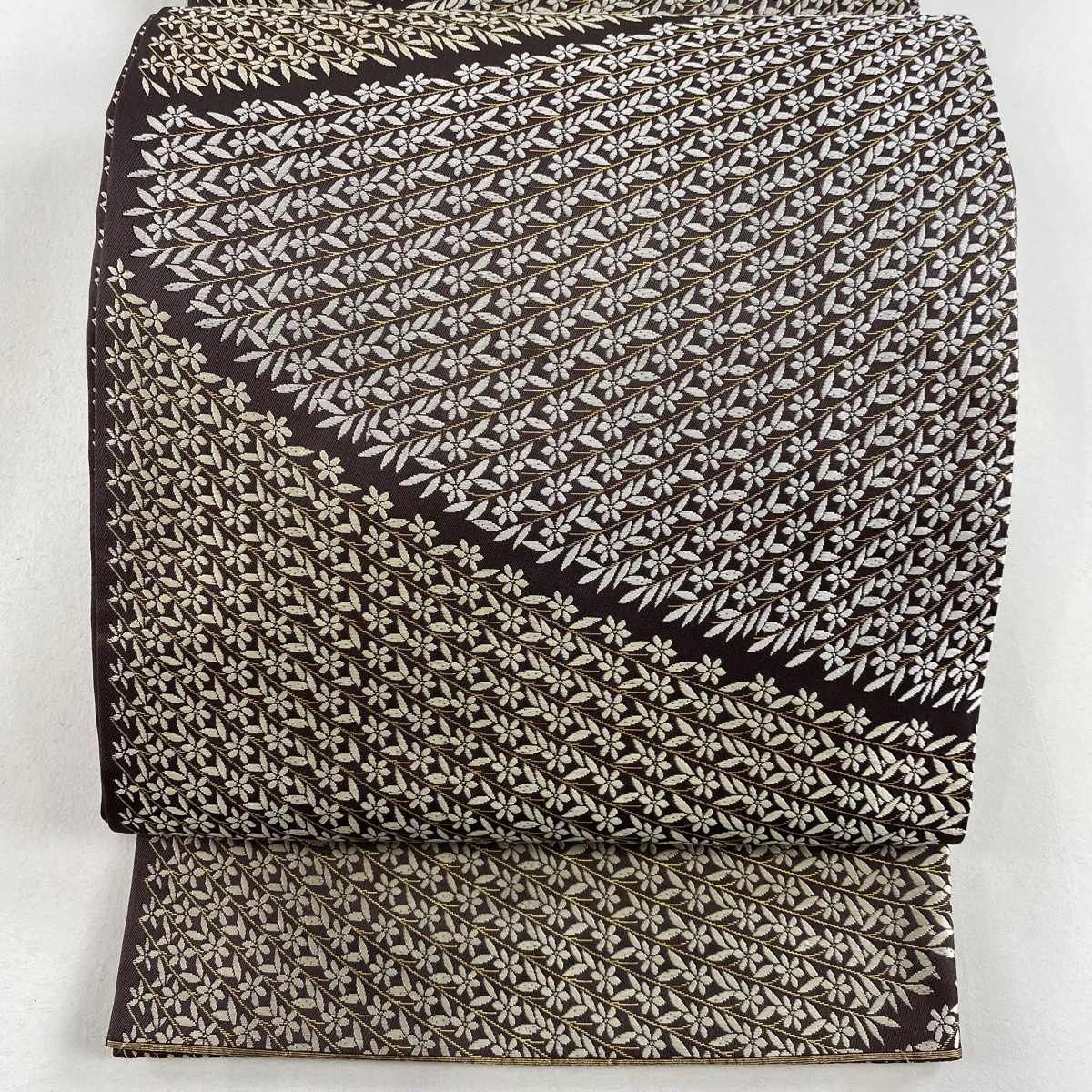 | 袋帯 美品 名品 まいづる 証紙 関西仕立て 草花 箔 茶色 全通 正絹 【中古】 |