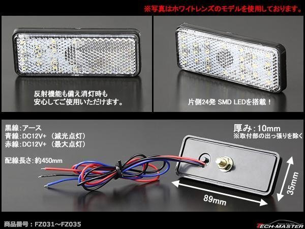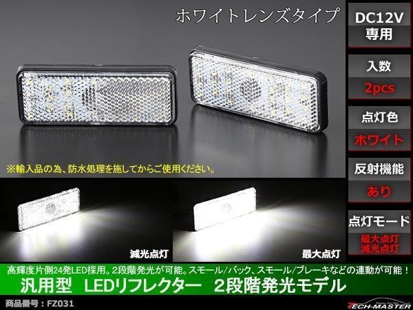 ■商品コード FZ031 ■商品タイトル 汎用 LEDリフレクター 連動可 サイドマーカー 反射板 ホワイト発光/ホワイトレンズモデル ■対応電圧 12V ■発光色 ホワイト(2段階光量) ■レンズカラー ホワイト ■数量 1セット2個 ■特徴 リフレクター内部にLEDを24発搭載し、夜間の視認性を高めております。 反射板も備え消灯時も安心してご使用いただけます。 減光点灯・最大点灯の2回路内蔵型で スモール・バック/スモール・ブレーキ などの連動も可能です。 ■注意事項 ※輸入品の為、防水処理を施してからご使用ください。 ■その他のカラーはこちら(24V、12V) レンズカラー、発光色違いはこちら ■その他商品(24V、12V) 角型マーカー 丸型マーカー バスマーカー 角型リフレクター 丸型リフレクター 防水マーカー クロムメッキマーカー ダウンライト付きマーカー |