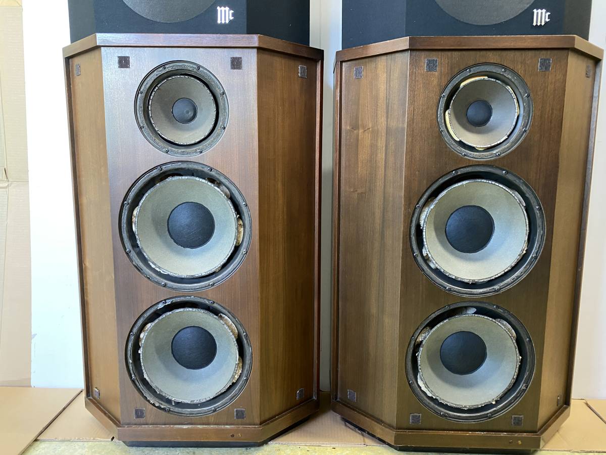 ■McIntosh マッキントッシュ スピーカー XRT20セット(マッチング・ペア)ジャンク扱い ●付属品・・・本体(中低音域)×2体マッチング (NO:CJ1877 / NO:CJ1878) /本体(高音域 2分割)×2 接続バー×2、金具ボルトなど、グリル・サランネット×2 ◎当店ランク/本体:(B) スピーカー:(B) エッジ:(C) S:新品 A:美品 B:普通の中古 C:傷の多い物 ◎点検、確認いたしましたが買取時の数年前にアンプをかえし、CDを聴いていたものでしたが、それを息子さんに譲ってしまい、スピーカーのみで動作は未確認です。 スピーカーで音楽を最後に聴いていたのが息子さんが家を建てた頃なので3年ほど前だと伺っております ☆状態と致しましては新品購入のワンオーナー品 ・禁煙者のご使用でした。音響のための部屋にて使用されておりました。 ①ウーハー側スピーカー外観で・・・上下/左右で接続の継ぎ目に開きはありません。底面もきれいです。 ・天板に変色の見られる所がありますが、ニスの剥離によるもので、デボットがあるわけではありませんので、このままで上にマットを敷いておくか、ニスは厚くはないため、中級編でクリアースプレーでボカシをされるかでよいかと思います。 ・裏面で白くなっているところがございます。これは、素材の劣化というより、変色なので、重大でもなく見えない部分でもあるので、気になさらないでよいと思います ②内部で・・・パネルはきれいです ・ウーハースピーカーでエッジが剥離しています。付け替えが必要です ・キャップは傷みやへこみはありません ・グリルは全体できれいです。気になる破れもありません。 ③ツインタースピーカー外観で・・・左右で4分割になり上側の木目調の貼りの一部浮いたところはあります。画像にてご確認ください ・グリルは破れやダメージはありません ・金属の足はサビ等気になるものは無いようです ・本体の上下と中間にある木製の(竹の節のようなもの)組み上げると見えない所に割れがあります。ボンドにて修復がしてあります 全体でのコメント・・・購入後かなりの年数がたっているものではありますが、専用のお部屋で使用されていたので指摘したところ以外は状態は良いとは思います。 写真でご確認の上ご入札ください。ご覧頂き、不明な点など、ご質問がありましたら、お気軽にお問い合わせ下さい。 ☆中古品の場合は、クリーンUP後、販売いたしておりますので、ご購入後も汚れなどの心配も気にせずに直ぐにお使い頂けます。 買取り商品です。完全新品ではございません状態に敏感な方及び完全美品コレクターの方は入札をご遠慮ください。 |