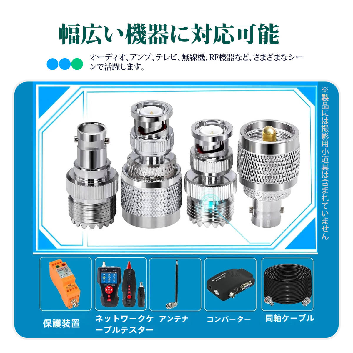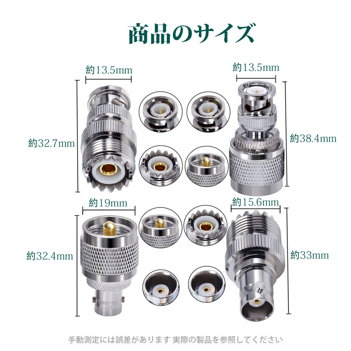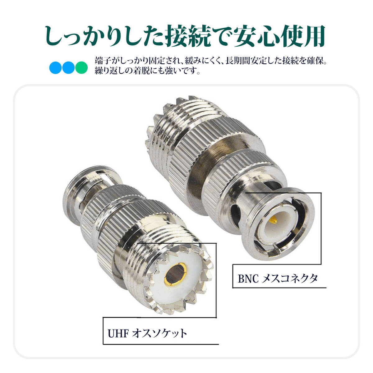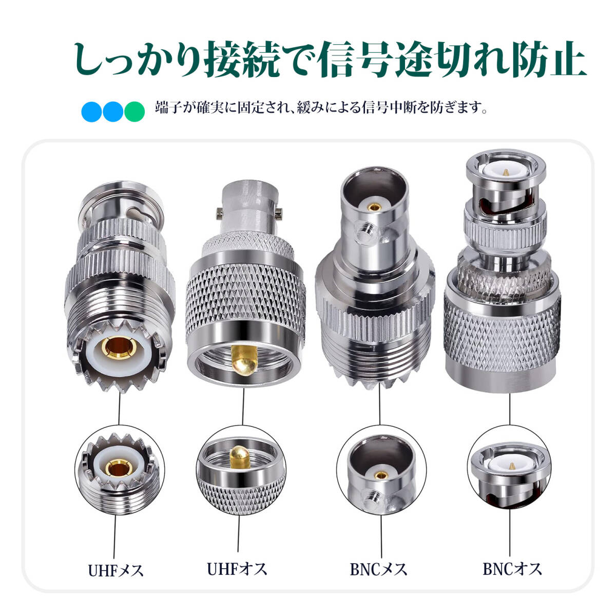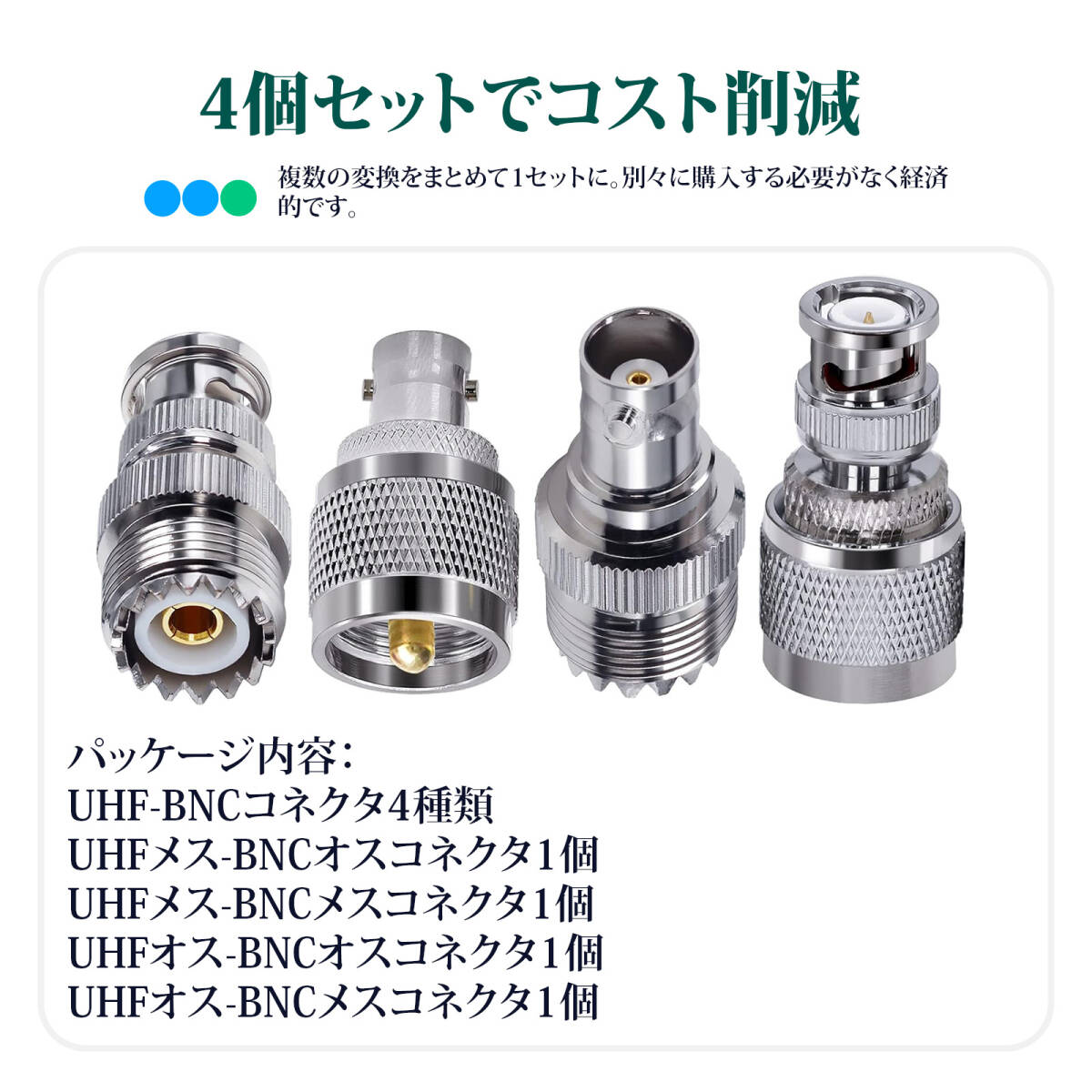 | パッケージ内容 | BNCオス - UHFオス 1個 + BNCメス - UHFオス 1個 + BNCオス - UHFメス 1個 + BNCメス - UHFメス 1個 |