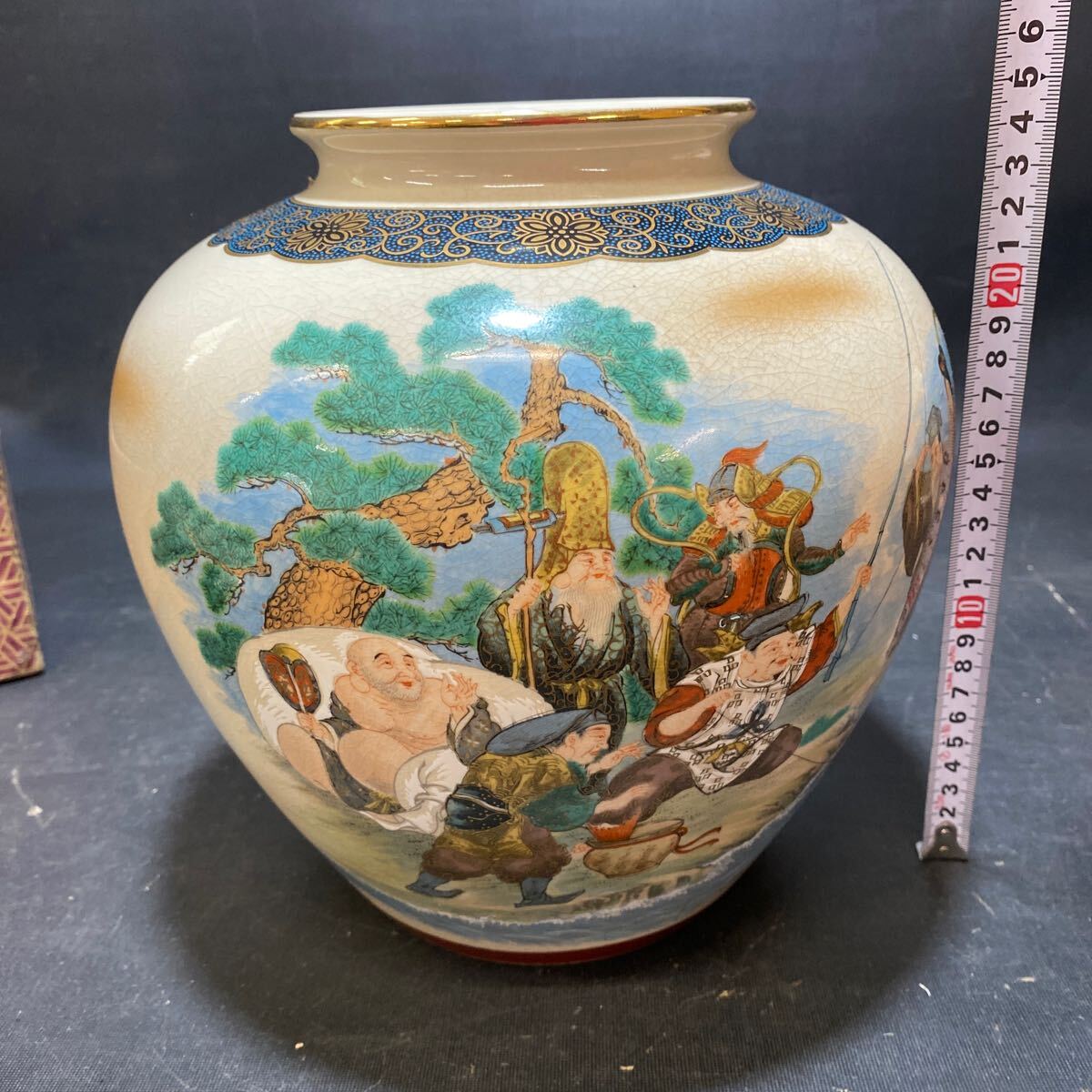 N 5912 [ 花器 6点 まとめて ] 九谷焼 七福神 フラワーベース 漆器 陶器製 高台 水盤 壺 花生け 花入れ 花活け 茶道具 花瓶 現状品