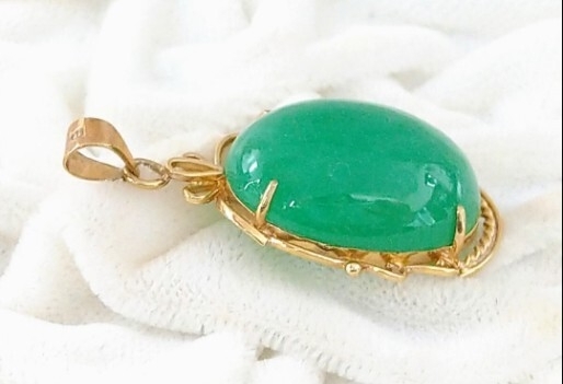 18K ネックレス トップ 天然 クォーツ カルセドニー グリーン 鑑別書 アンティーク ジュエリー☆Lh1☆30