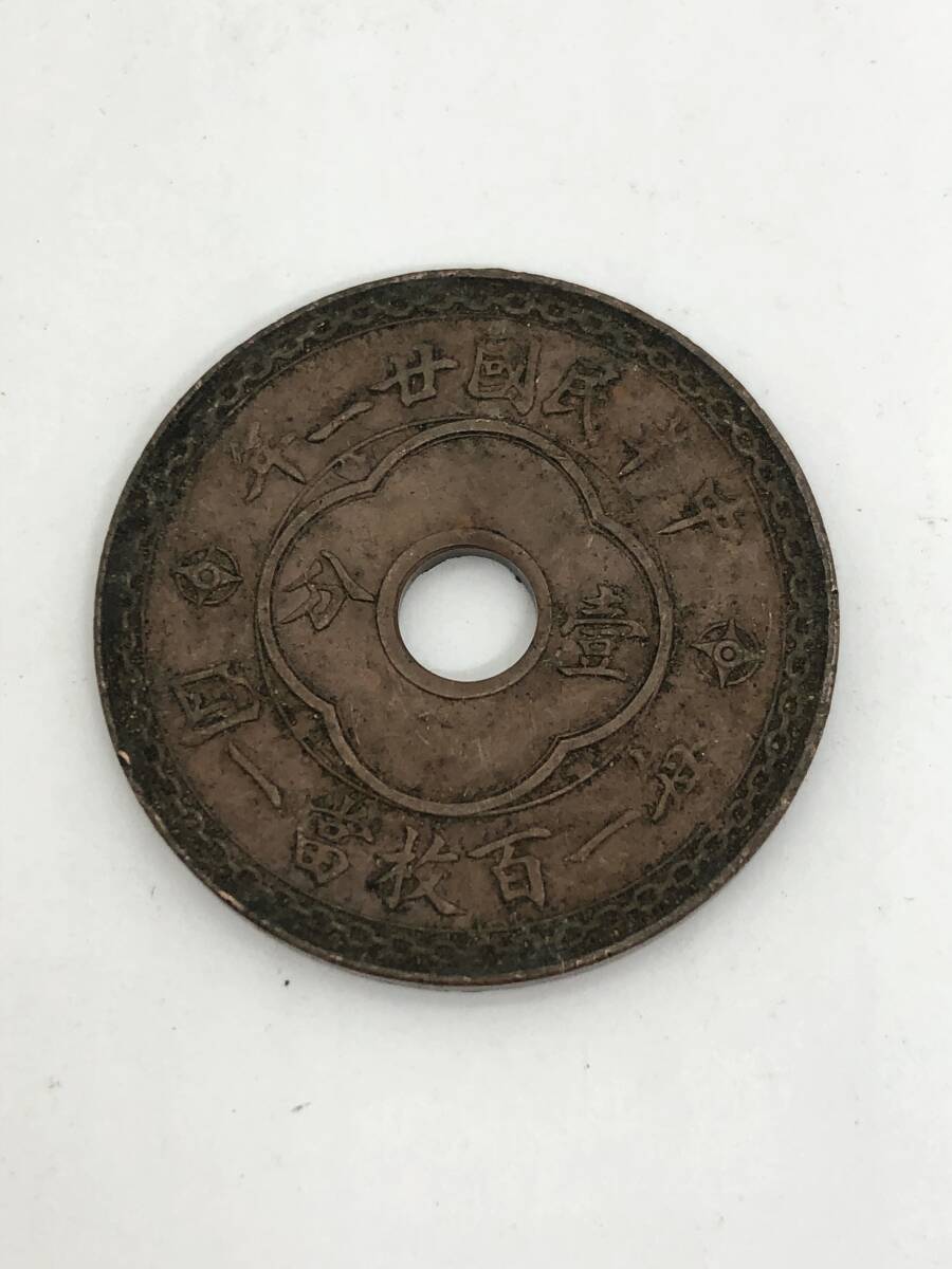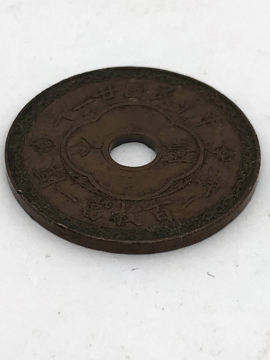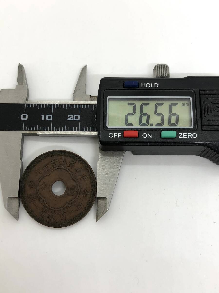 中華民国 壹分 銅幣 (1分銅貨/1CENT) 銅貨 毎一百枚當一圓 民国12年 直径:26.56㎜ 重量:6.82g K-10