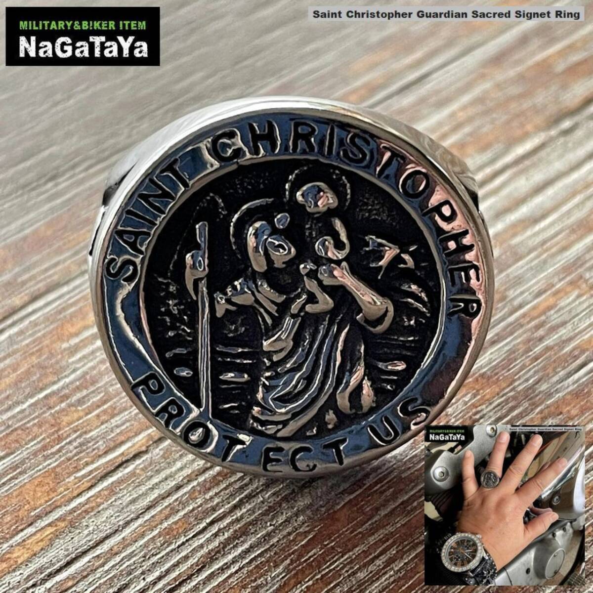 ★ シグネットリング 指輪 セントクリストファー 守護神聖 お守り メンズ ステンレス アクセサリー ★