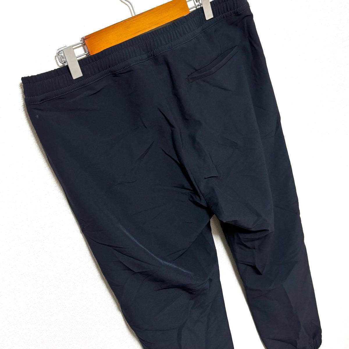 ウエストは紐とゴム仕様で、楽にリラックスして穿けるジョガーパンツです。脚のラインも裾もスッキリ見せ、おしゃれにも着こなせるアイテムです。ダメージなどなく、まだまだ長くお使い頂けます。