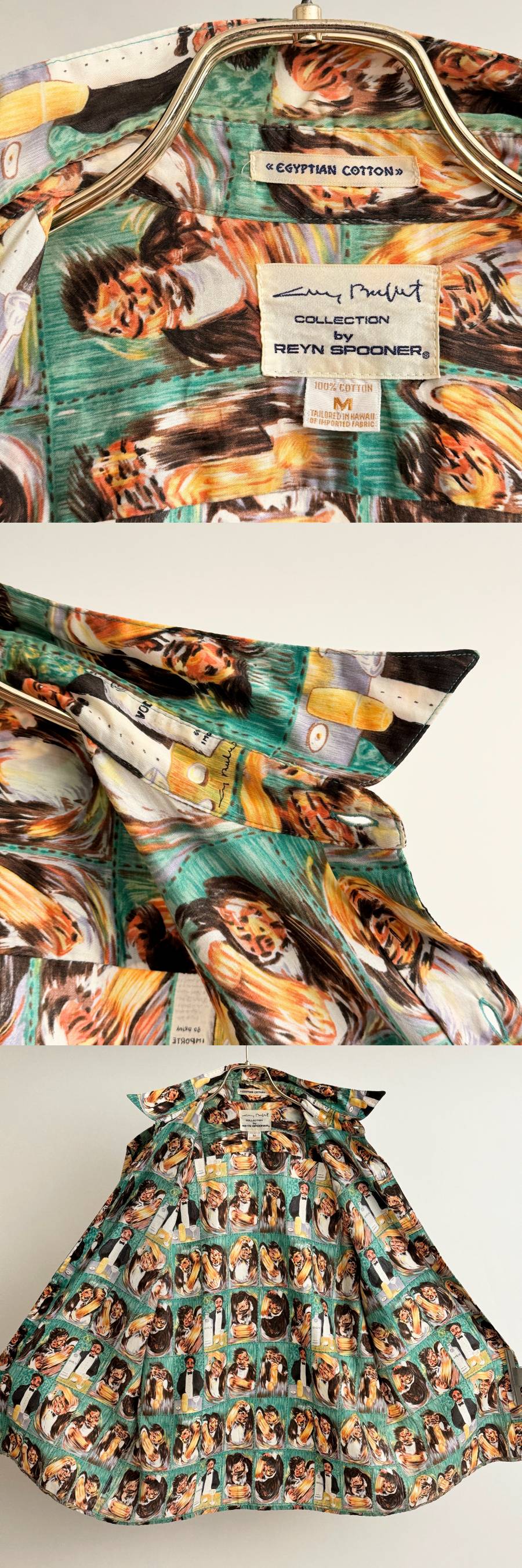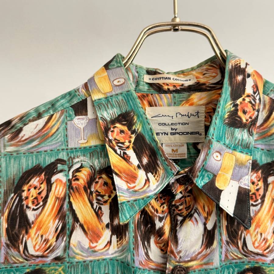 希少《 Rare / Guy Buffet / Reyn Spooner 》80s90s 美品【 初見 レインスプーナー ビンテージ 緑 カクテルシェイク ハワイアンシャツ M 】