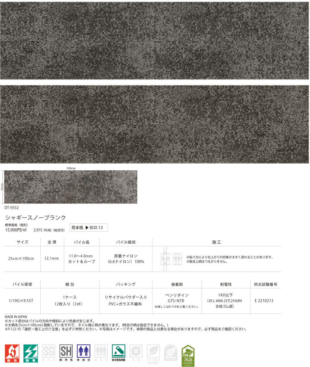 【サンゲツアウトレット】新品廃番高級デザインタイルカーペット【シャギースノープランク】DT9352 【12枚】3平米■送料無料■
