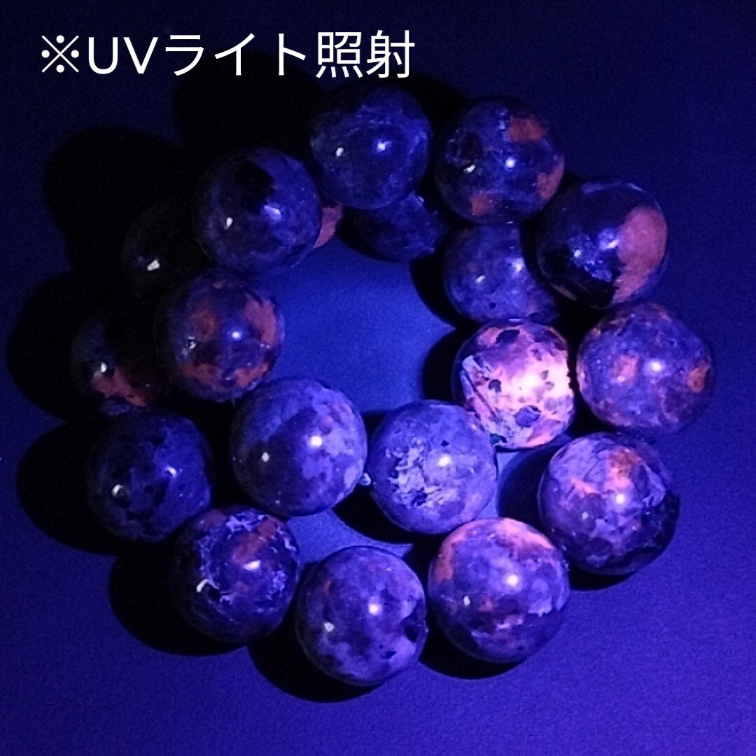 一見、地味なように見える鉱物ですが紫外線ライト(UVライト)の下ではオレンジに光る部分があります。