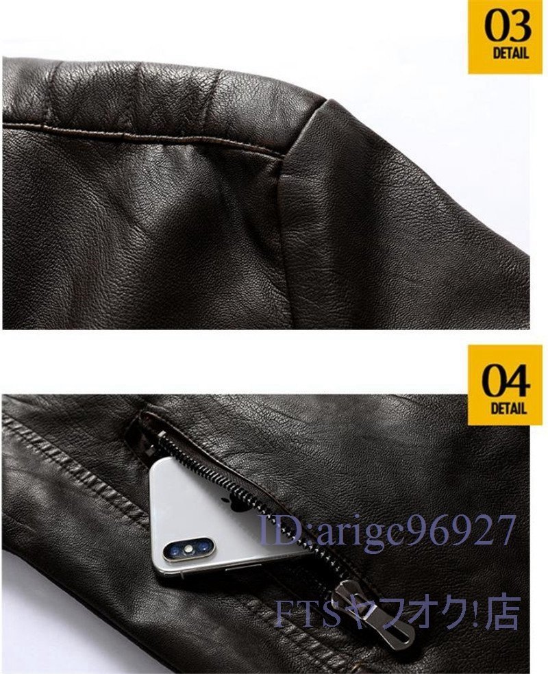T932☆新品ライダースジャケット メンズ 裏薄めボア トレンド ステキレザー ブルゾン カジュアル バイクウエア 黒 M
