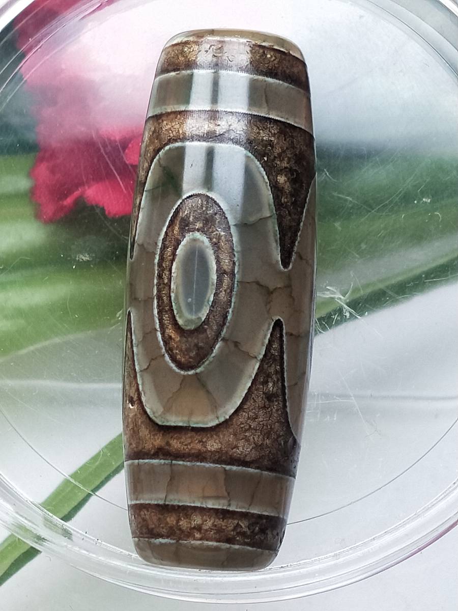 天眼石はメノウ(瑪瑙)の一種で年輪状の層によっててきています。その部分を丸みを帯びた形に研磨することで眼のような模様が現れる事から、古代チベットでは天眼石を魔よけ、厄除けの法具や護符として使用してきました。
