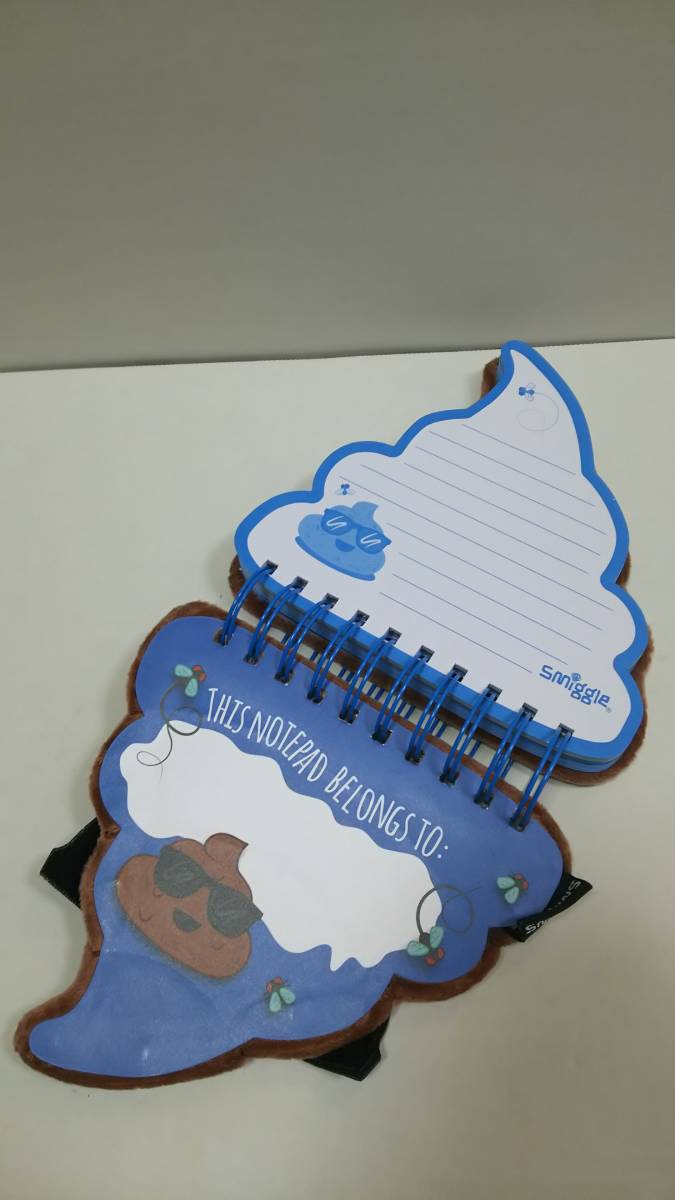 表紙にぬいぐるみ感がある、グラサンのうんち型おもしろリングノートです。