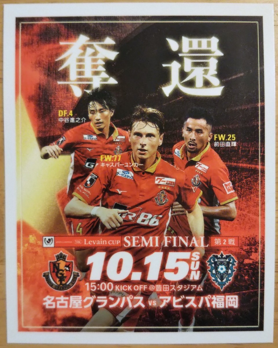 10月15日に豊田スタジアムにて開催された福岡戦第2戦を記念したステッカーとなります。(対戦相手、日付入っています)