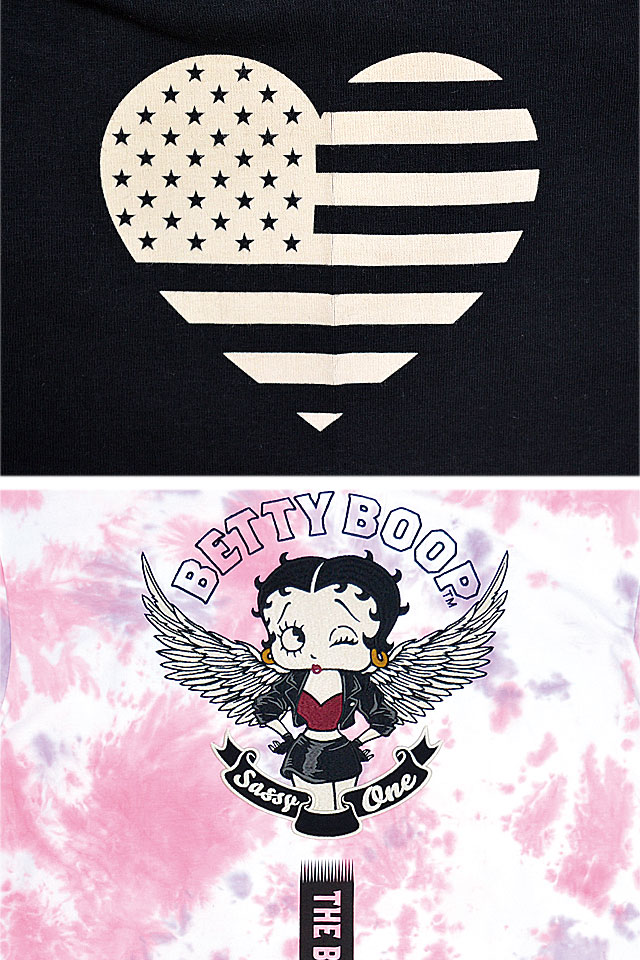 1920年代~40年代にアメリカでワークウェアを中心とした製品を世に送り出したブランド「The BRAVE-MAN」から「BR×BETTYコラボ オーバーサイズTシャツ(BBB-2320)」のご紹介です。 大きな瞳とぽってりした赤い唇が印象的な女の子、ベティ・ブープ(Betty Boop)。 今回はゆったりとしたオーバーサイズのTシャツが登場。 フロントはシンプルに、左胸にベティを刺繍で配置。 ボディーには、ベア天竺という生地を採用。 カジュアルに着こなしに取り入れることの出来る、大人のキャラクターアイテムです。 | |||||||||||||||||||||||||