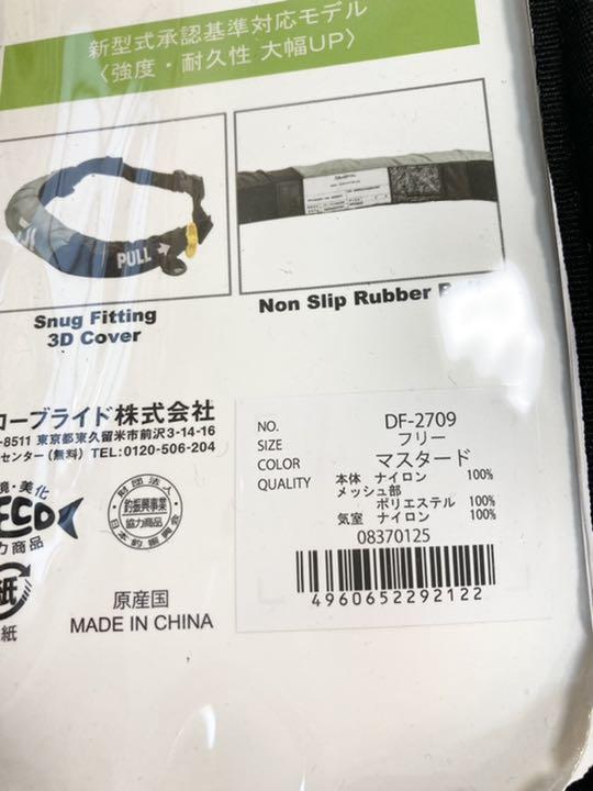 新品 ダイワ(DAIWA) インフレータブルライフジャケット DF-2709 腰巻タイプ フリーサイズ フィッシング釣り 海釣り バックル マスタード色