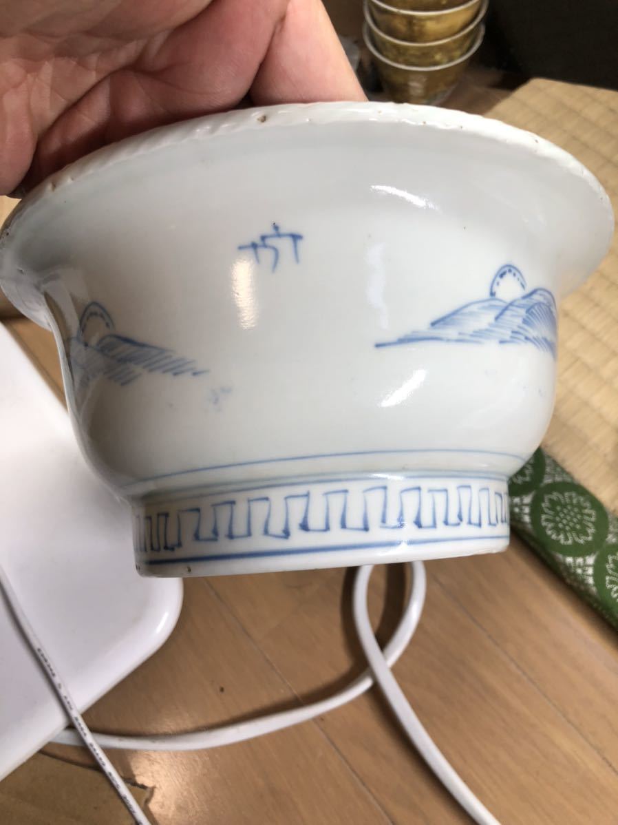 古伊万里 在銘 珍品 杯洗? 三つ丼? 染付 山水図