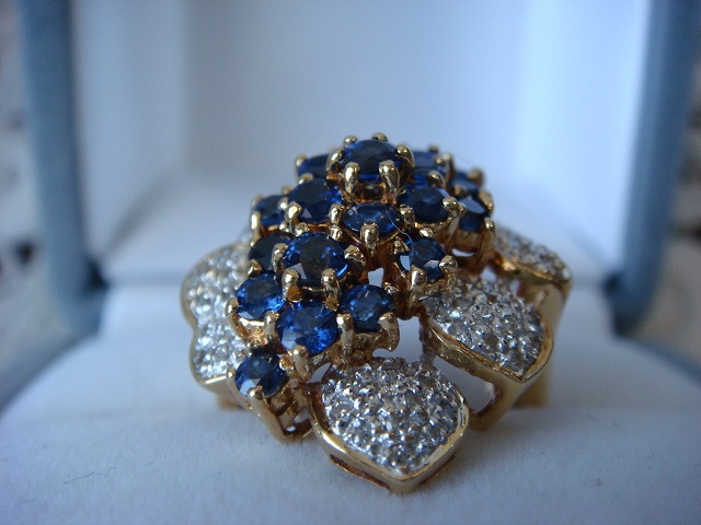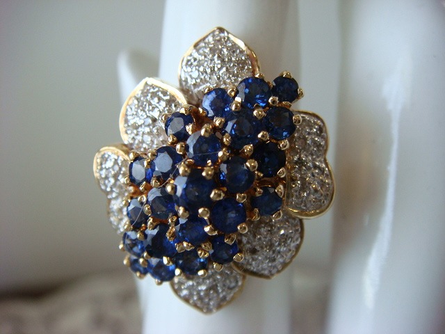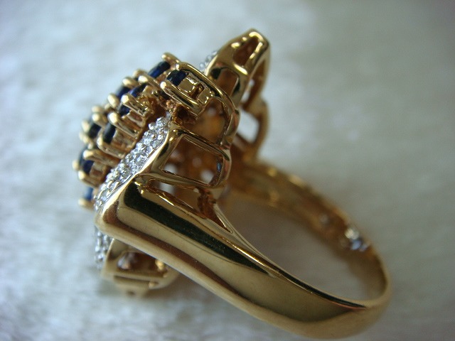 | ご覧頂きましてありがとうございます! 豪華な造りの18金サファイヤ&ダイヤモンドリングです。K18の刻印入り。 サイズは約12です。重さは約10,9gもあります。ダイヤとサファイヤの石目の刻印はありません。 新品のケースに入れてお届けいたします。 追加画像がありますのでパソコンでご確認ください。 宝石との出会いは一期一会です。『いいな』と思ったら是非、身につけてあげて下さい。きっと宝石も喜ぶことでしょう! 宝石は決して貴女を裏切りません。身につけた貴女を守ってくれることでしょう。 いつも頑張っている自分へのご褒美にいかがでしょうか? 良いものをひとつお持ち下さい。一生物のジュエリーとなります。 画像での判断は難しいと思いますが、落札後の返品、クレーム等の無きよう、ご自分の自己責任においてご入札下さい。 モニター、パソコン、カメラによって色や感じ方が変わりますのでご注意下さい。 商品についてはコレクター、質屋さん、お客様の委託品が中心ですので、ご質問の答えが遅くなる事がありますがご了承下さい。 商品説明につきましてはすべてをお知らせできませんので、質問にてお願いいたします。 基本的にはUSED品ですので、その点を十分にご理解の上ご入札下さい。 途中で出品を取り下げる場合もありますがご了承下さい。 尚、トラブル回避の為、申し訳ございませんが、新規の方及び評価によってはこちらで入札を削除させていただく場合もございますが、ご理解下さい。 メールの確認は夜になりますのでご連絡が遅くなることもありますがご了承願います。 品物にも人と同じように『こころ』があると思います。喜んでいただけることが私にとっても品物にとっても一番良いことだと思います。 『落札したけど気に入らなかった』ということが無いように十分にお考えになってからご入札下さい。 発送は宅配便を予定しております。また発送には2,3日かかる場合もございますが、ご了承願います。 お互いに気持ちよい取引のため、落札後3日以内のご連絡、5日以内のご入金頂けない場合は申し訳ございませんが取り消しさせていただきます。 落札金額より僅かですが『子ども虐待防止 オレンジリボン運動』へ寄付をさせていただきますがご了承お願いいたします。 | |