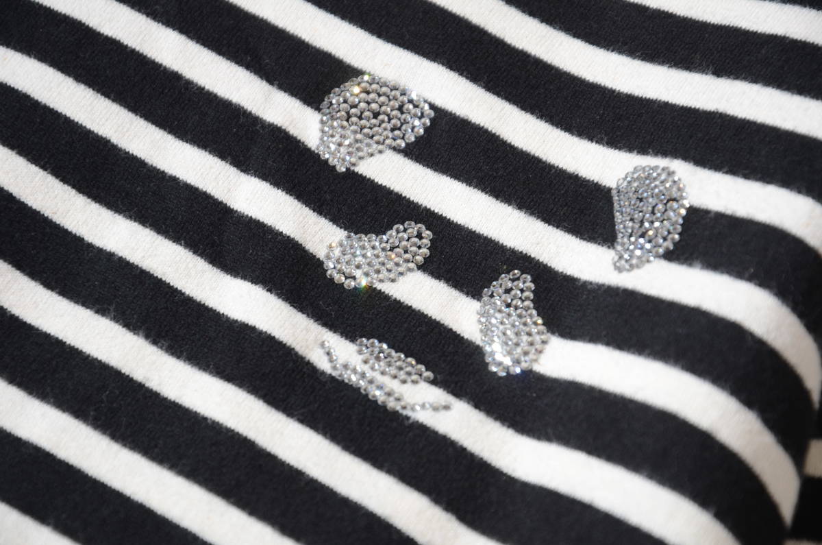 モヴェズエルブ パンダのスワロフスキーがほっこりかわいい黒白ストライプカットソー トップス 日本製