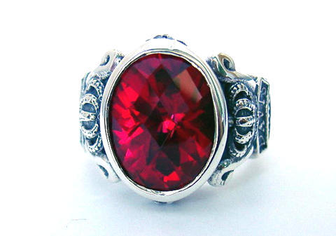 ◆ シルバー925 オーバルレジェンダリ リング & ルビー 16号 ★ カレッジリング 新品 未使用 ◆ オーバル レジェンダリリング