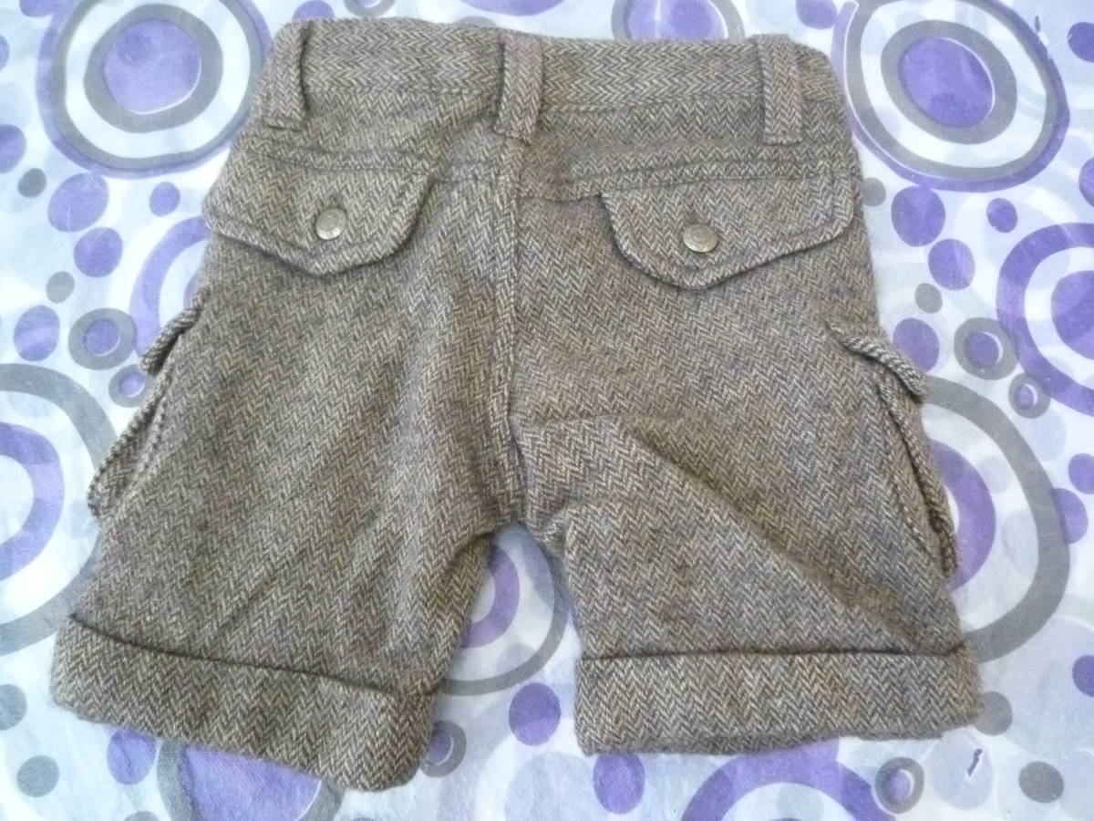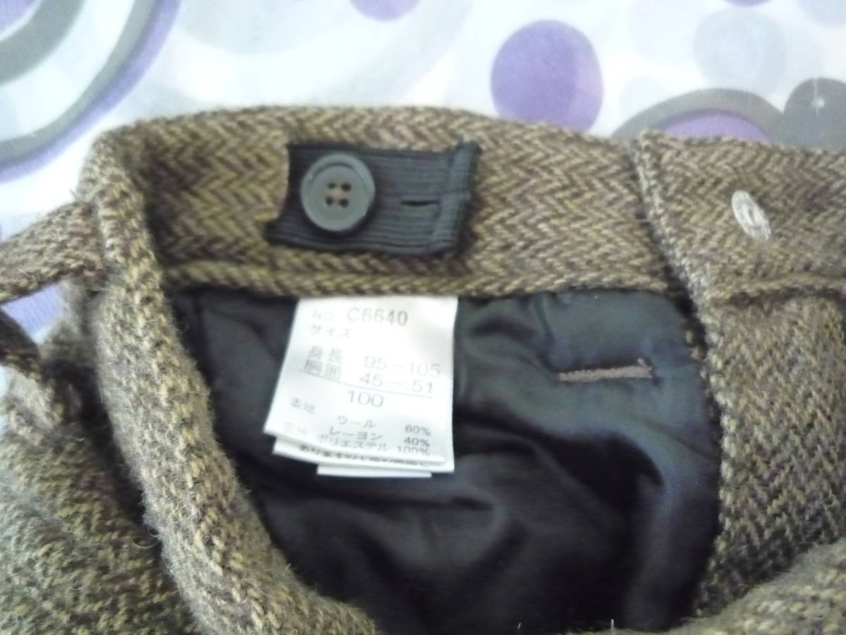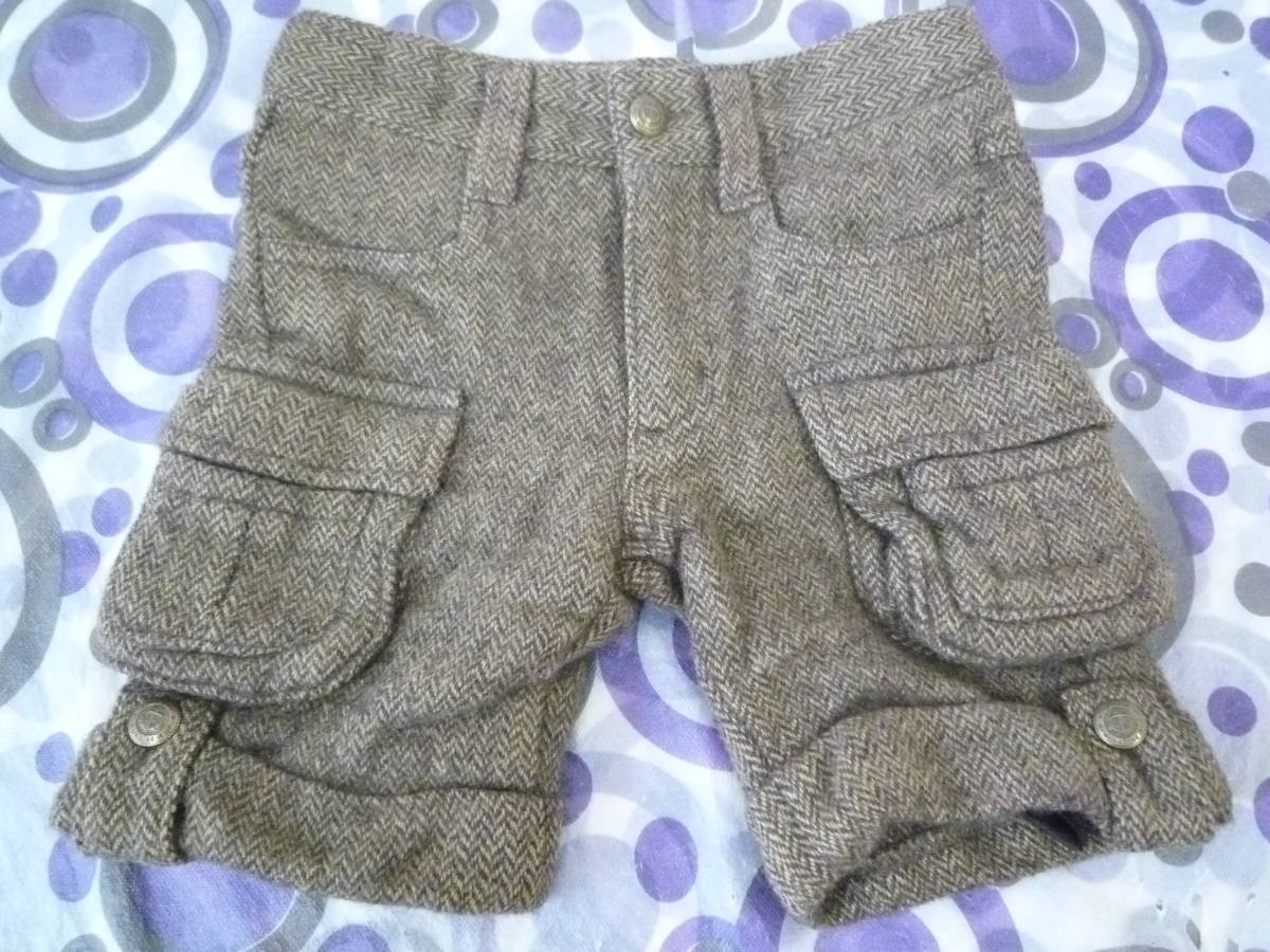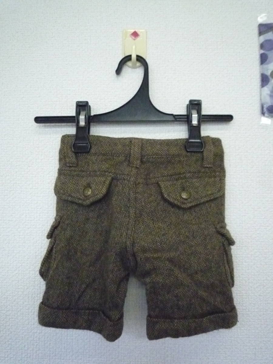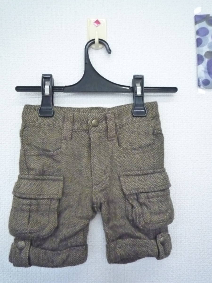 ★ツイード生地 ショートパンツ 半ズボン カーキ・茶混合(100)