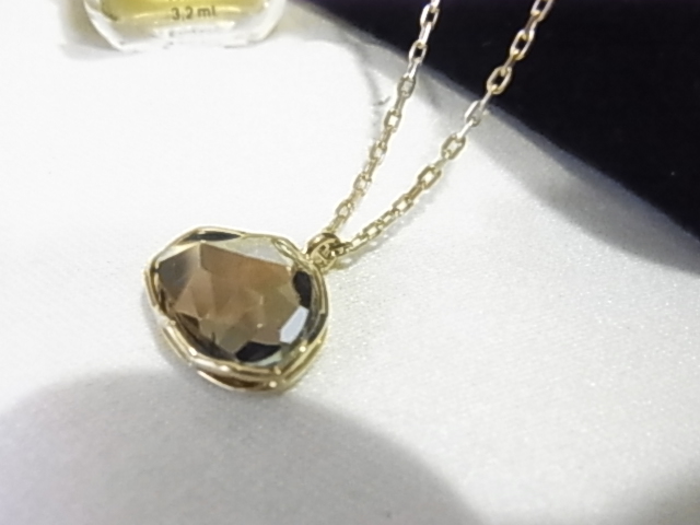 ☆ブラウン系 薄い茶色系  カッティングが綺麗なカラーストーン アジャスターも可愛い ネックレス
