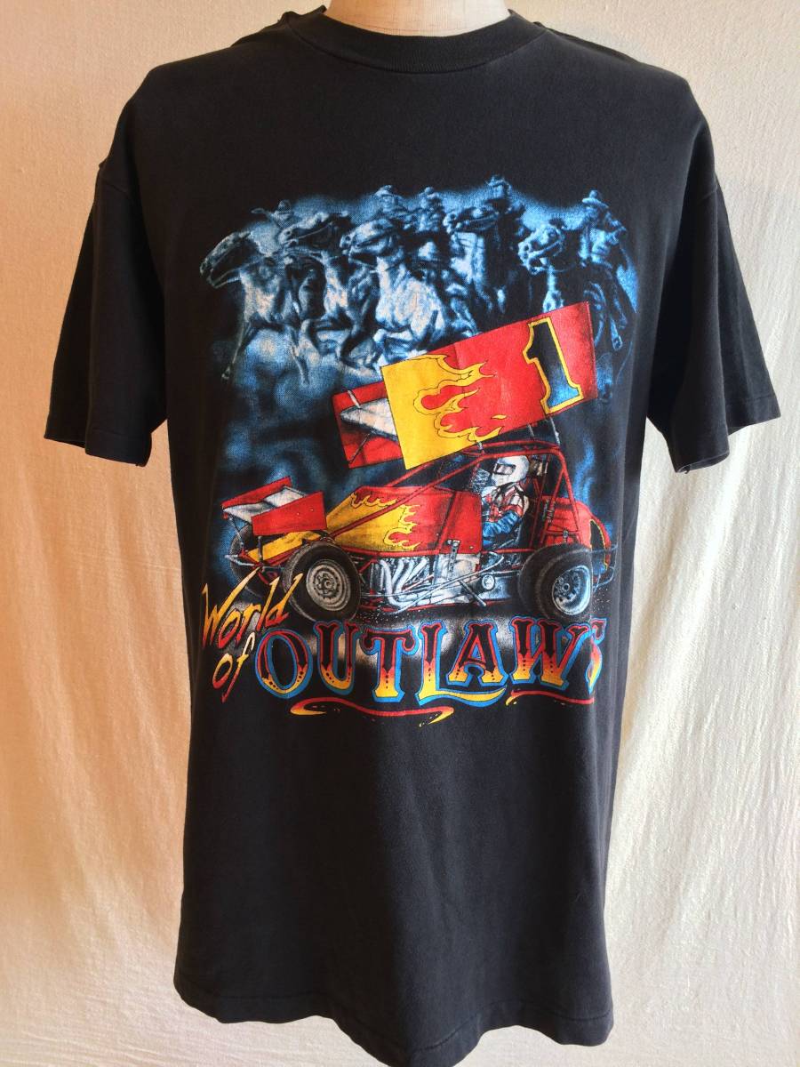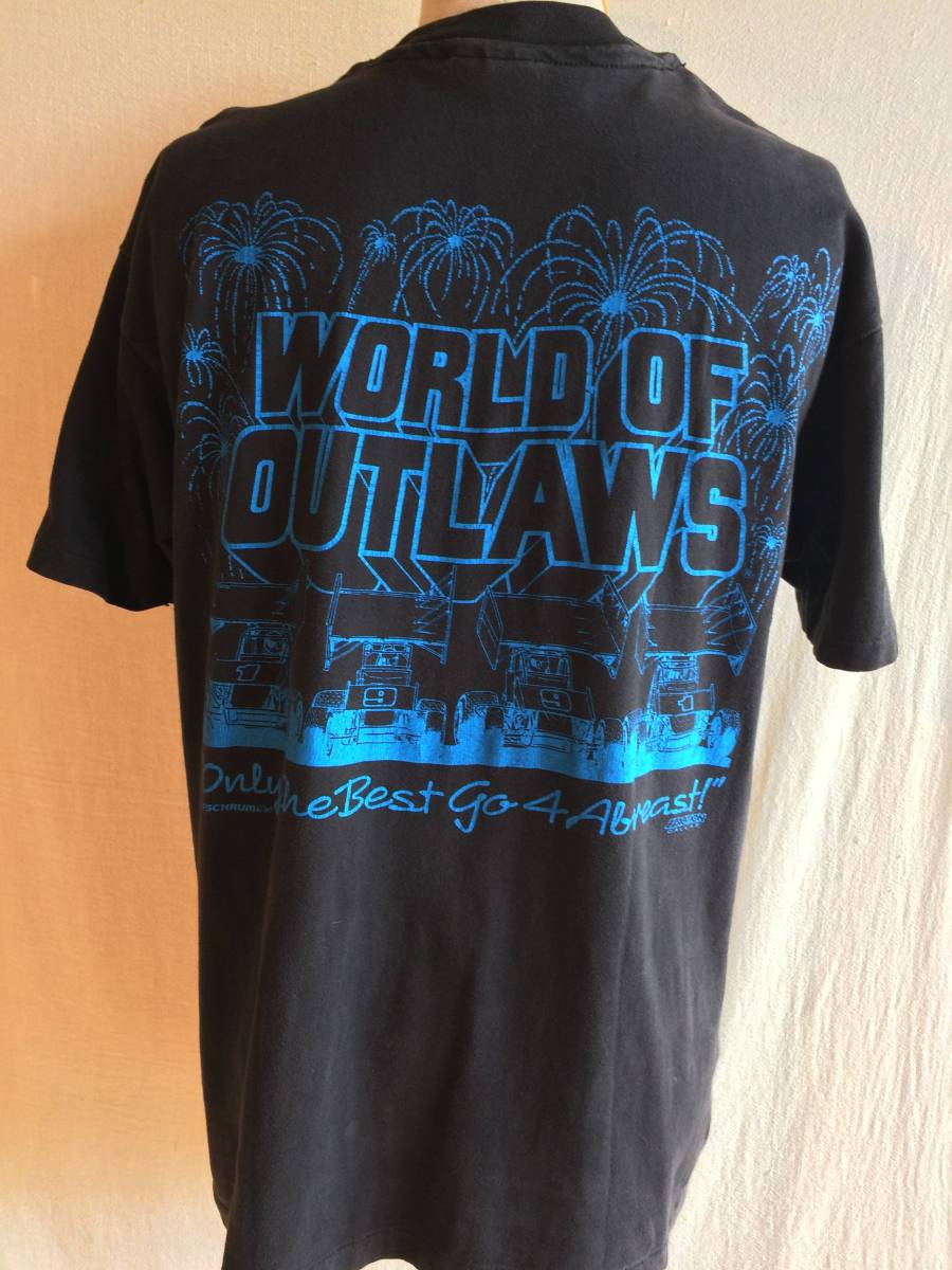 90's/L/送料無料【USA製アメリカ購入】World of OUTLAWS/オリジナル古着ヴィンテージ/黒オフィシャルOLDオールドTシャツusedレーシングカー