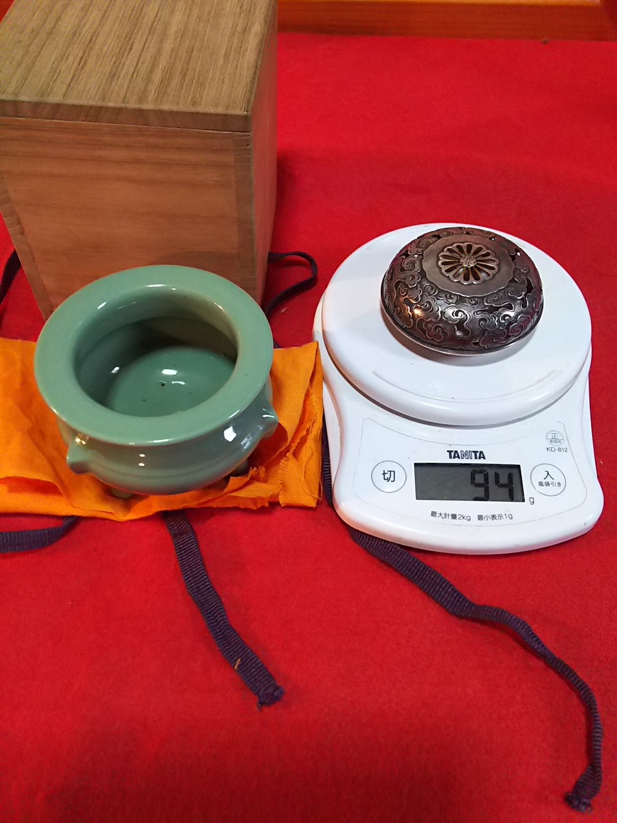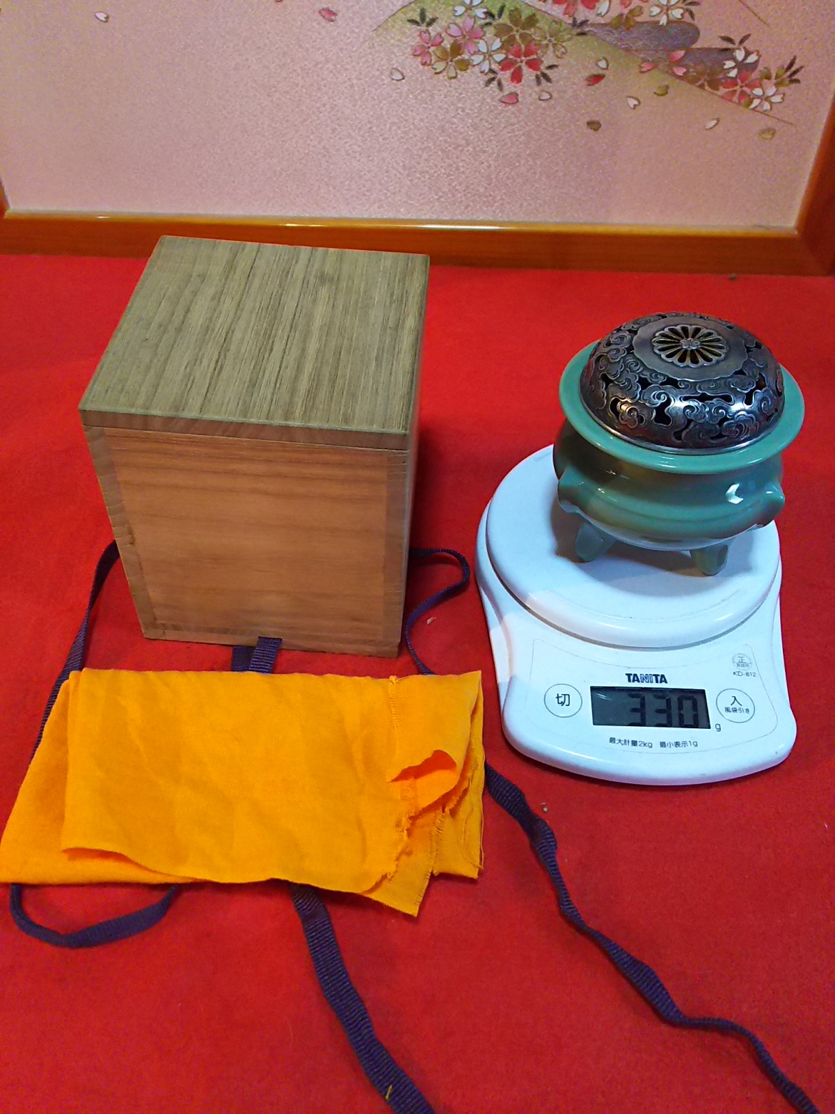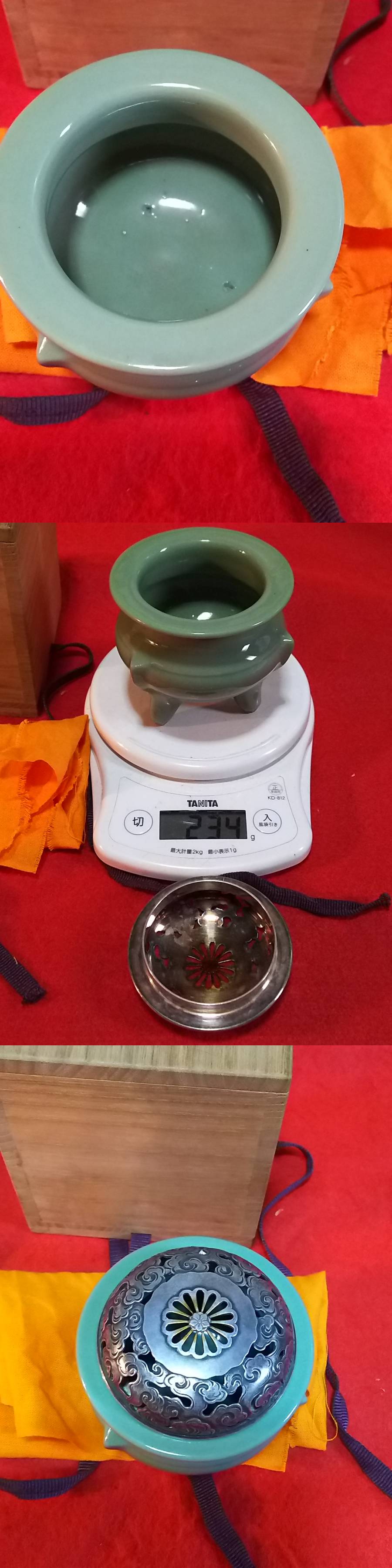 うぶだし骨董純銀火屋青磁三足香炉(作者光洋作) サイズ横幅最大9,1センチ 高さ10,5センチ 純銀火屋94グラム(菊に雲竜象嵌) 作者光洋作 箱付 商品状態とても良い風合いの青磁に重量感ある純銀火屋です。勿論商品状態も極上品です。 詳しくは、写真参照でお願いします。 下にフォトアップ写真ついてますので参照お願いします。 骨董品につきノンクレーム ノンリターンでお願いします。 発想は、ゆうパック80サイズにて発送いたします。 落札後48時間以内で連絡できる方4日以内で入金できる方入札待ってます。注意喚起当方は、ヤフーオークションの販売のみです。個人ネット販売サイトが個人ネットショップで私ども商品写真文章コピーし貼り付けて販売する業者がいます悪徳業者在庫ありませんので注意ください。現在ヤフーオークションに相談かけてます。 違法アップロードになります。法的罰せられます。