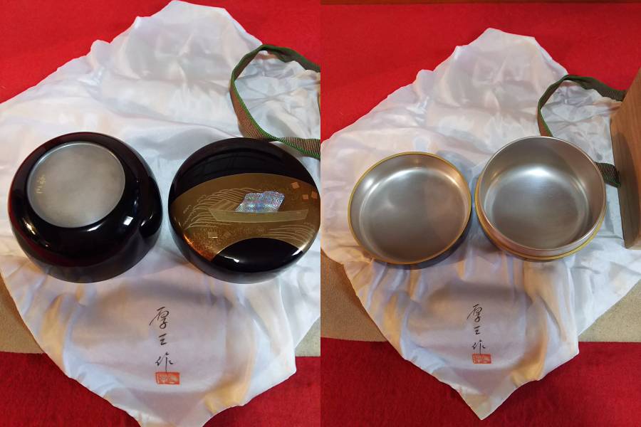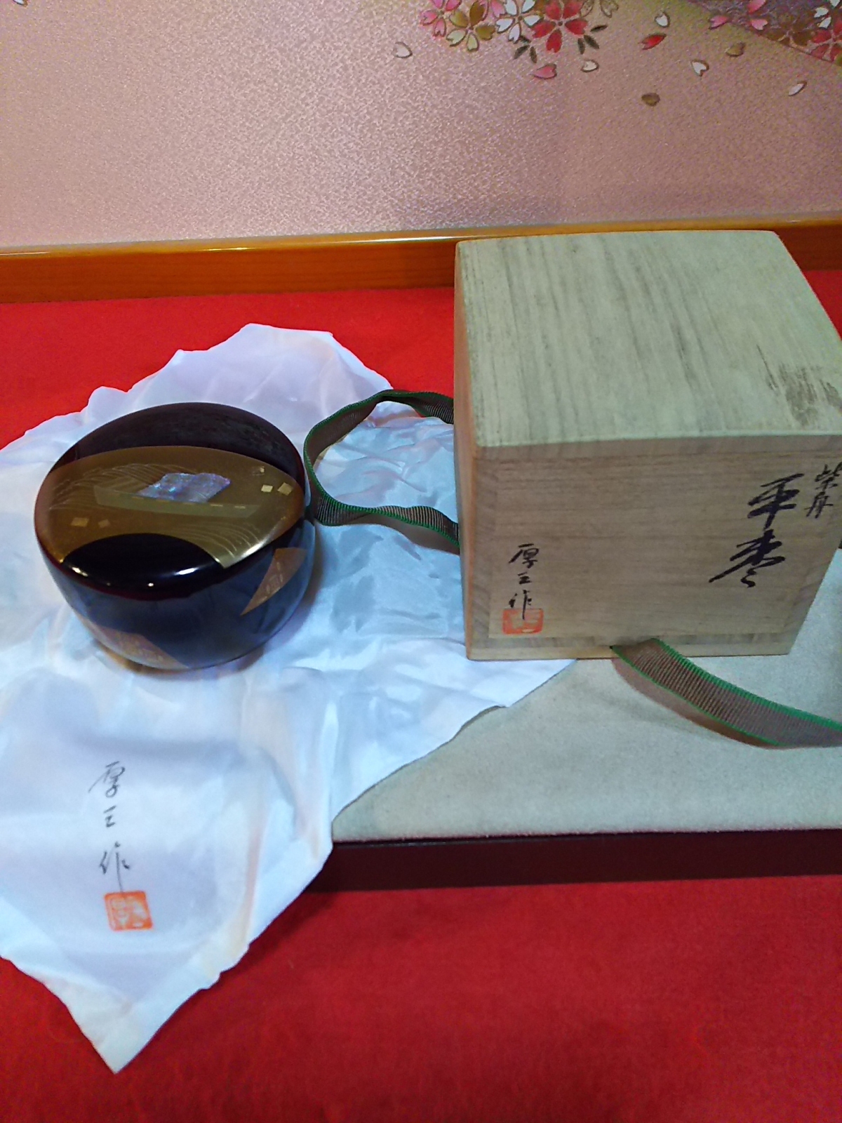 茶道家よりうぶだし利休好み紫舟平棗名工厚三作共箱付 横幅最大8,5センチ 高さ6,1センチ 蒔絵師厚三作 共箱付き 式布付き 商品状態説明見事な金蒔絵螺鈿象嵌中も銀漆塗で、底に厚三在銘入りです。本物保証 商品状態長期未使用で極上品です。 詳しくは、写真参照お願いします。滅多にでない1品です。茶道家の方コレクションに加えてさい。 古品扱いにつきノンクレームノンリターンでお願いします。 落札後48時間以内で連絡できる方4日以内で入金できる方入札待ってます。 注意喚起当方は、ヤフーオークションの販売のみです。個人ネット販売サイトが個人ネットショップで私ども商品写真文章コピーし貼り付けて半額以下で販売する業者がいます悪徳業者在庫ありませんので注意ください。現在ヤフーオークションに相談かけてます。 違法アップロードになります。法的罰せられます。