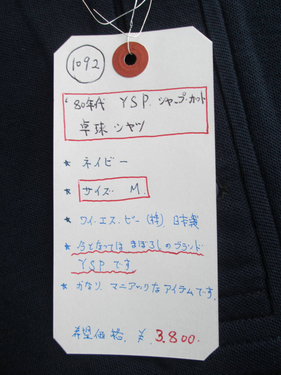 1092 80年代 YSPsharpカット 卓球シャツ Mサイズ
