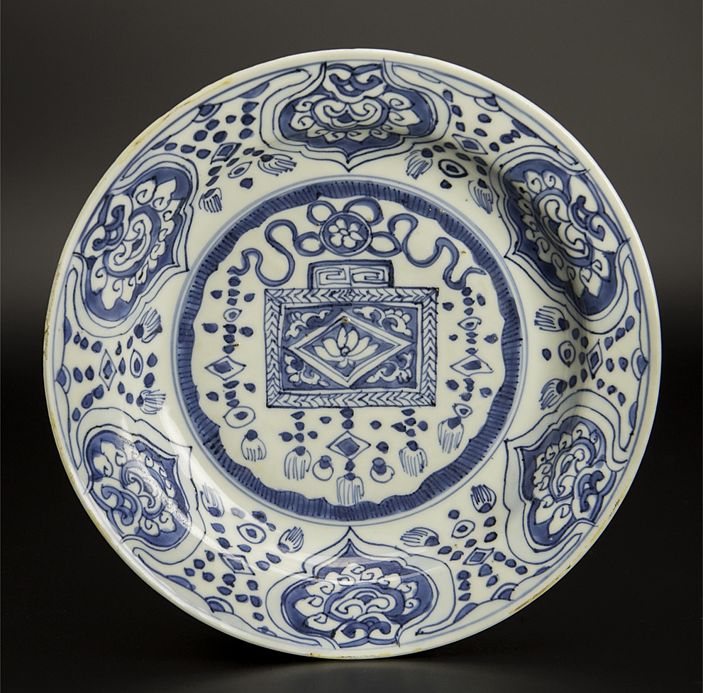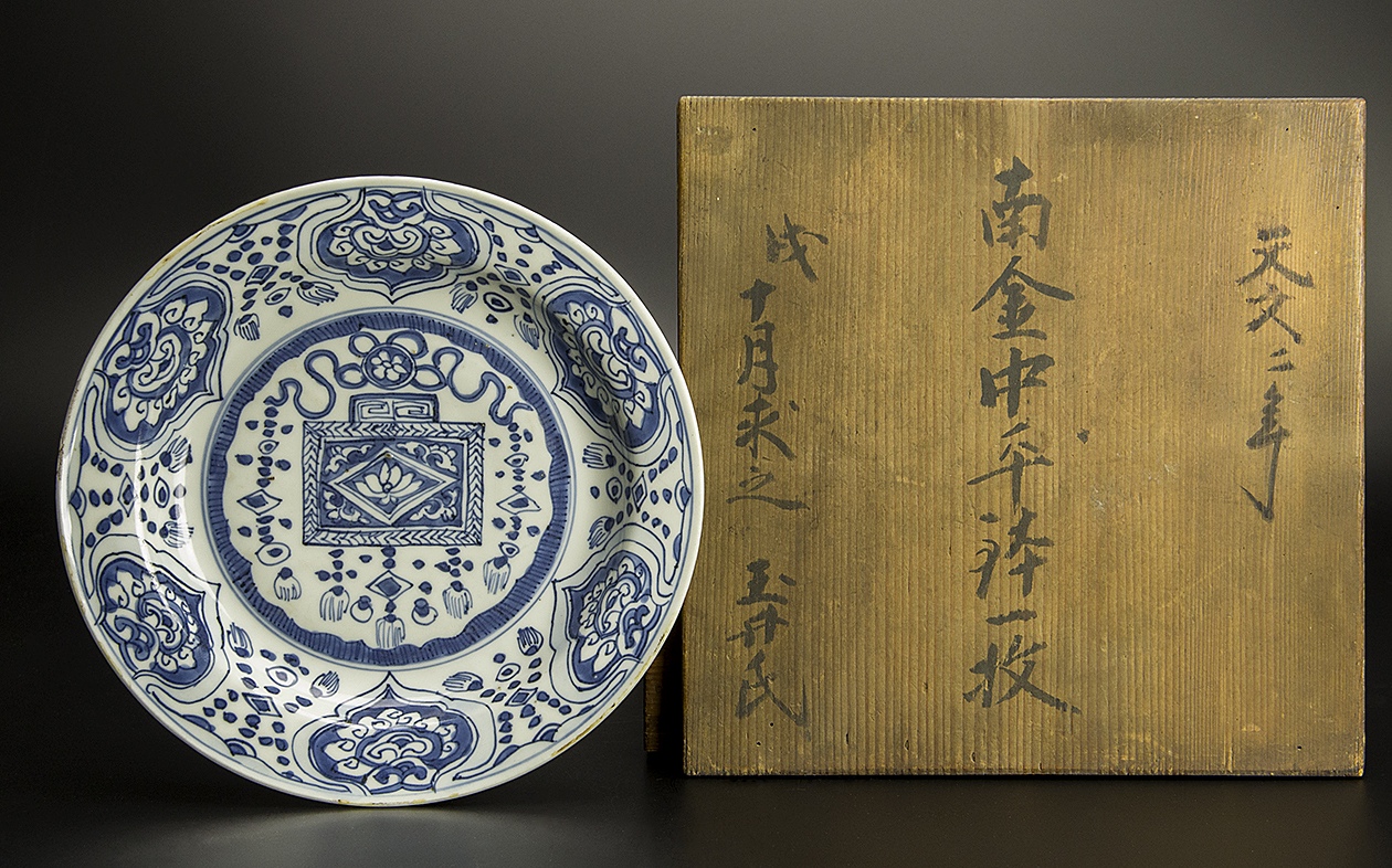 明 青花盤 天文二年(1533年)箱書 共箱 中国 古美術